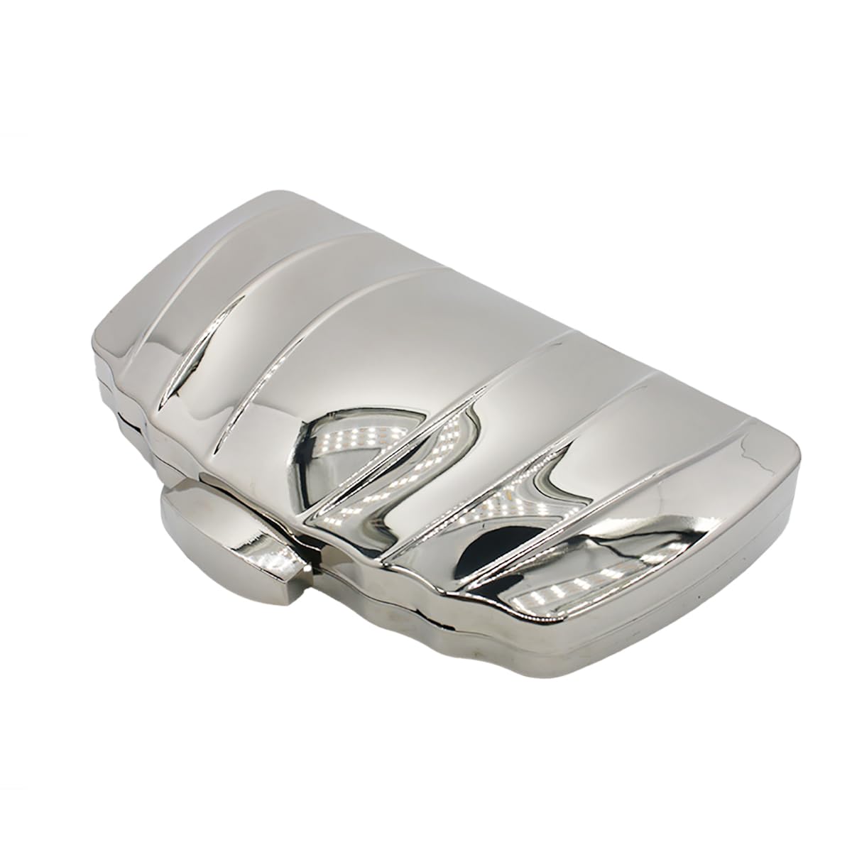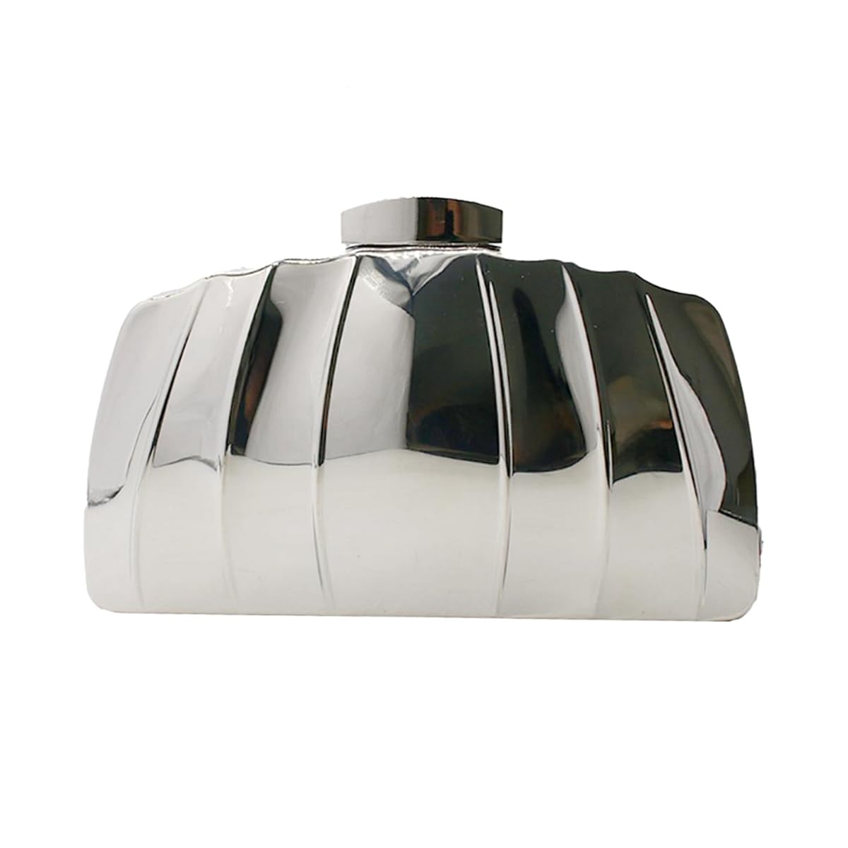 PENGZHI Women Sparkly Metal Clutch Purse Unique Metallic Evening Bag Wedding Clutch Metal Box Handbag Purse Party Shoulder Bag, Silver