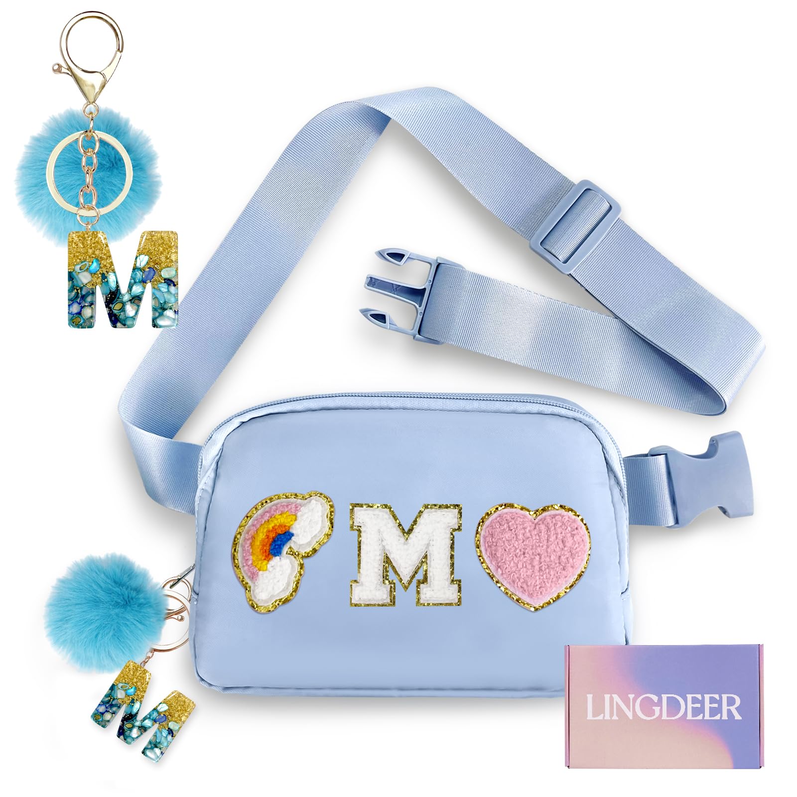 Personalized Belt Bag with Keychain, Fanny Pack for Girls Women, Initial Birthday Gifts for Teen Girls Mom, Crossbody Bag, Small Waist Packs, Travel Essential Preppy Gifts (Pink M)