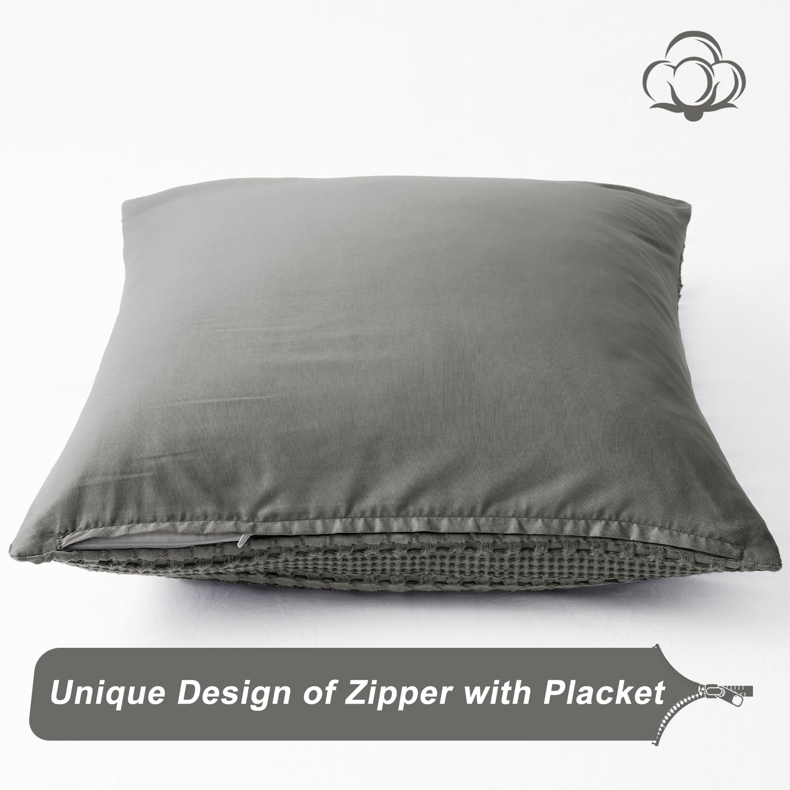PHF 100% Cotton Waffle Weave Euro Sham Covers, 2 Pack 26" x 26" Bed Pillow Covers for Elegant Home Decor, No Filling, Luxury Aesthetic Soft Euro Pillow Cases for Bed, Dark Grey