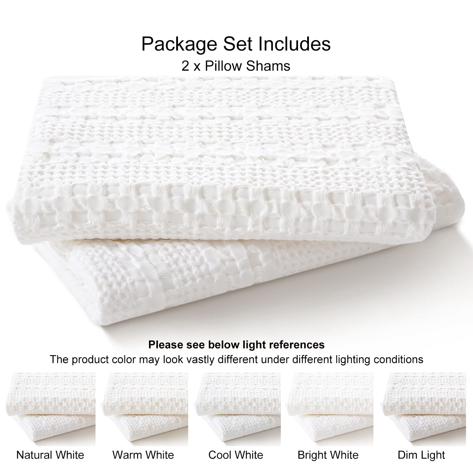- Exquisite Waffle Weave Design: Classic yet stylish waffle weave design features three-dimensional, puffy and elegant appearance, brings casual sophistication and create a soothing retreat. Available in various colors, these pillow shams perfectly complement any home décor. Just decorate your comfortable pillows with our waffle weave pillowcase covers