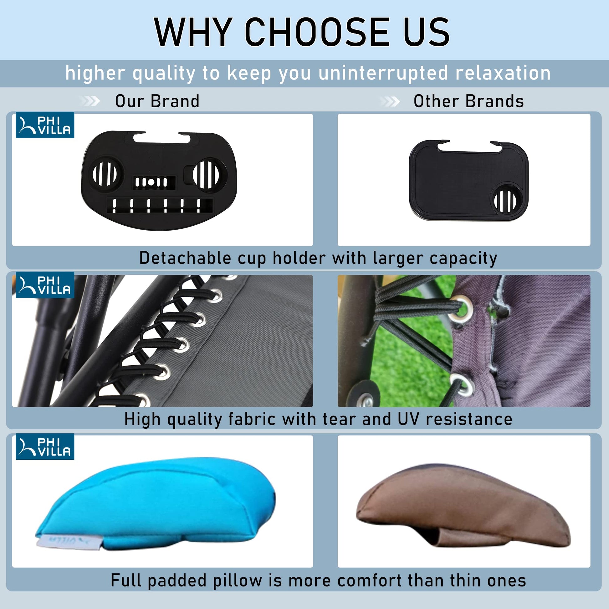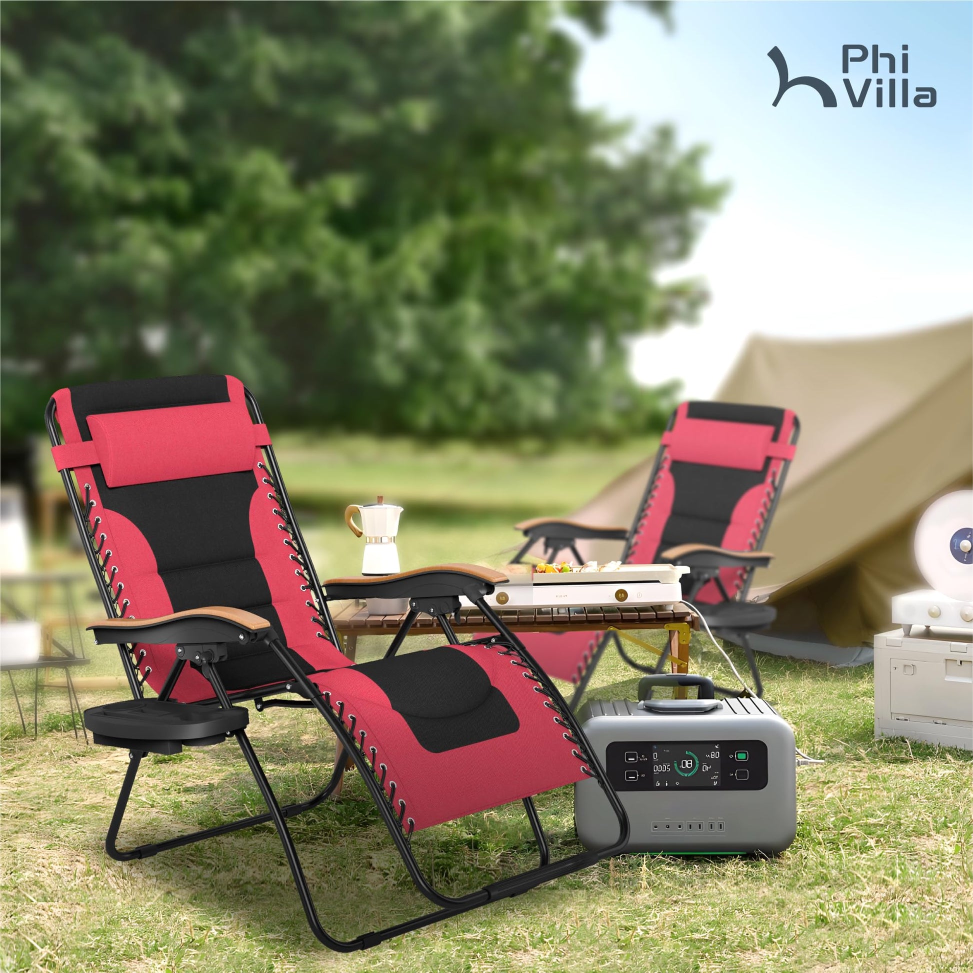 PHI VILLA XXL Oversized Padded Zero Gravity Chair, Foldable Patio Recliner, 30" Wide Seat Anti Gravity Lounger with Cup Holder, Set of 2, Support 400 LBS (Red)