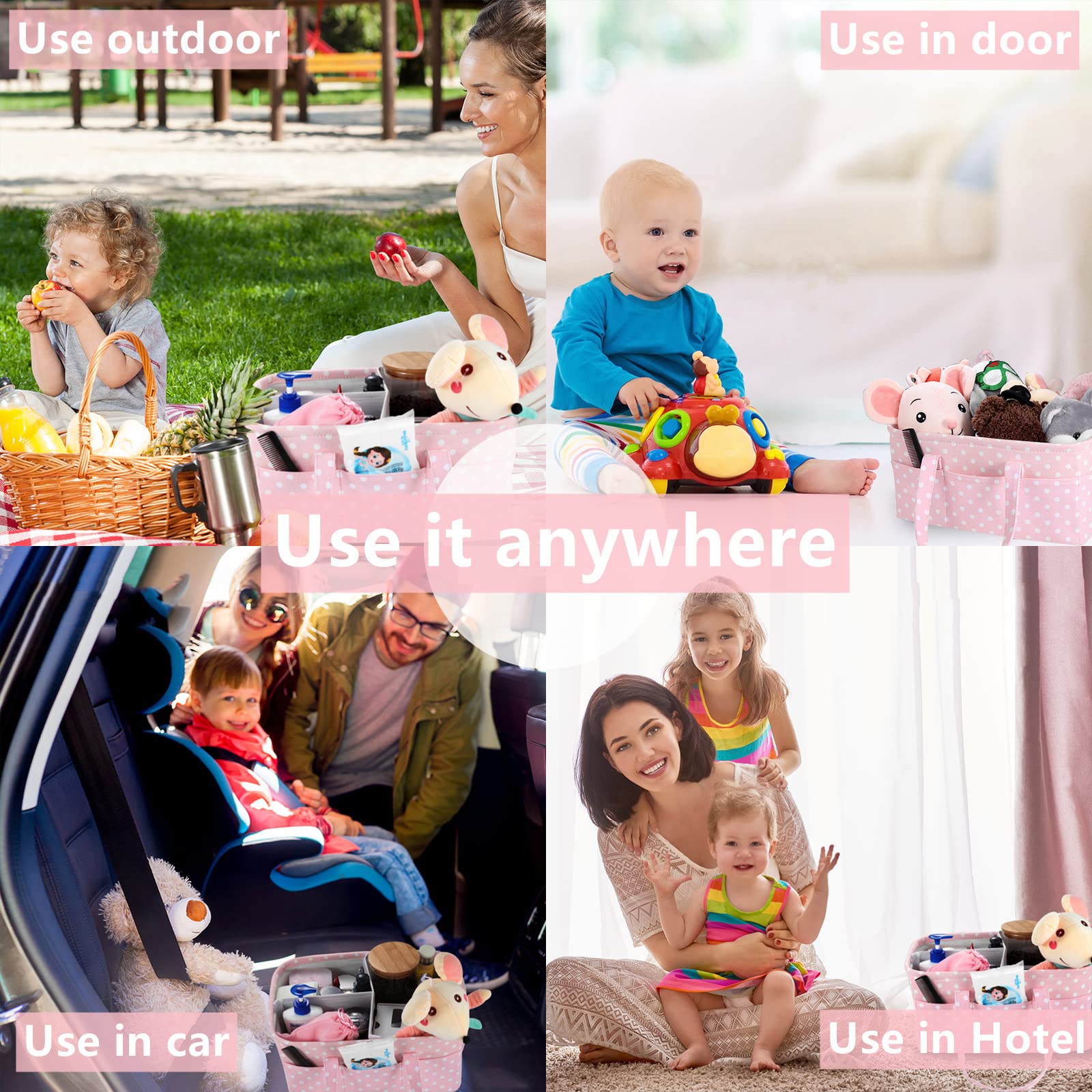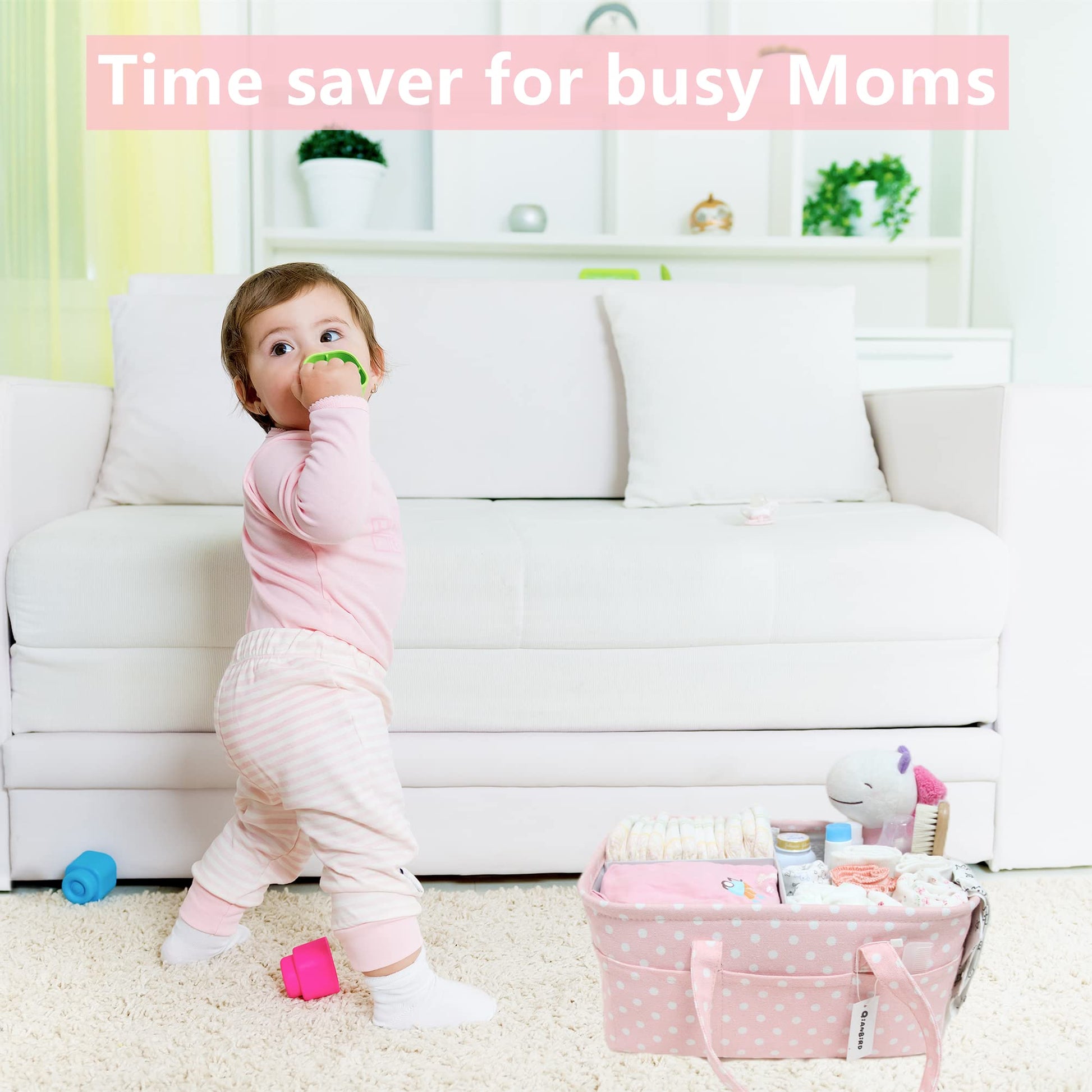 Pink Diaper Caddy Organizer for Baby Girl-Large Portable Diaper Caddy Basket for Changing Table-Diaper Organizer Caddy-Car Travel Tote Bag-Newborn Registry Baby Shower Basket for Diapers & Wipes