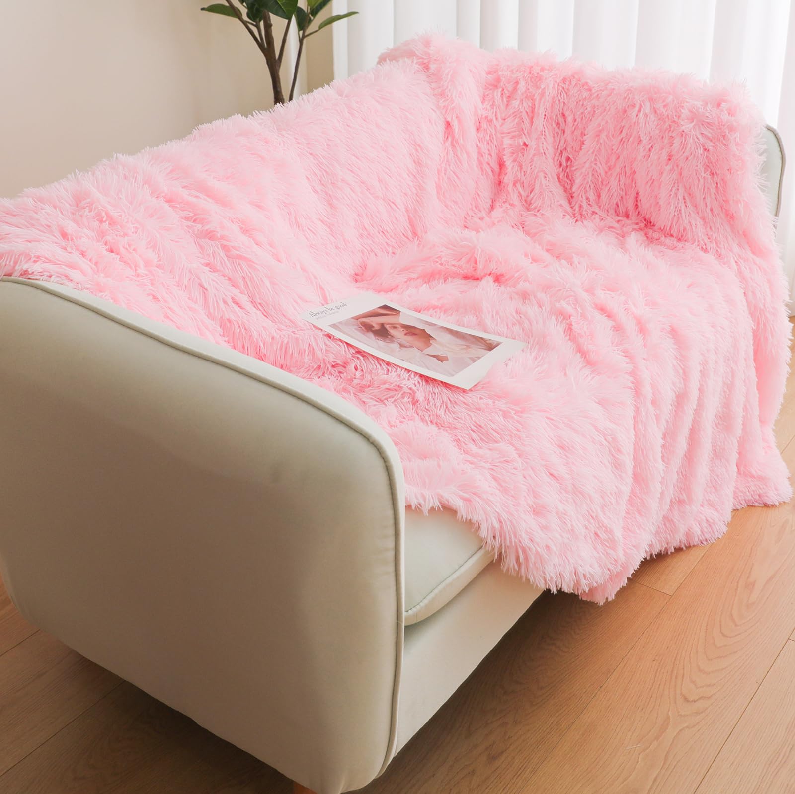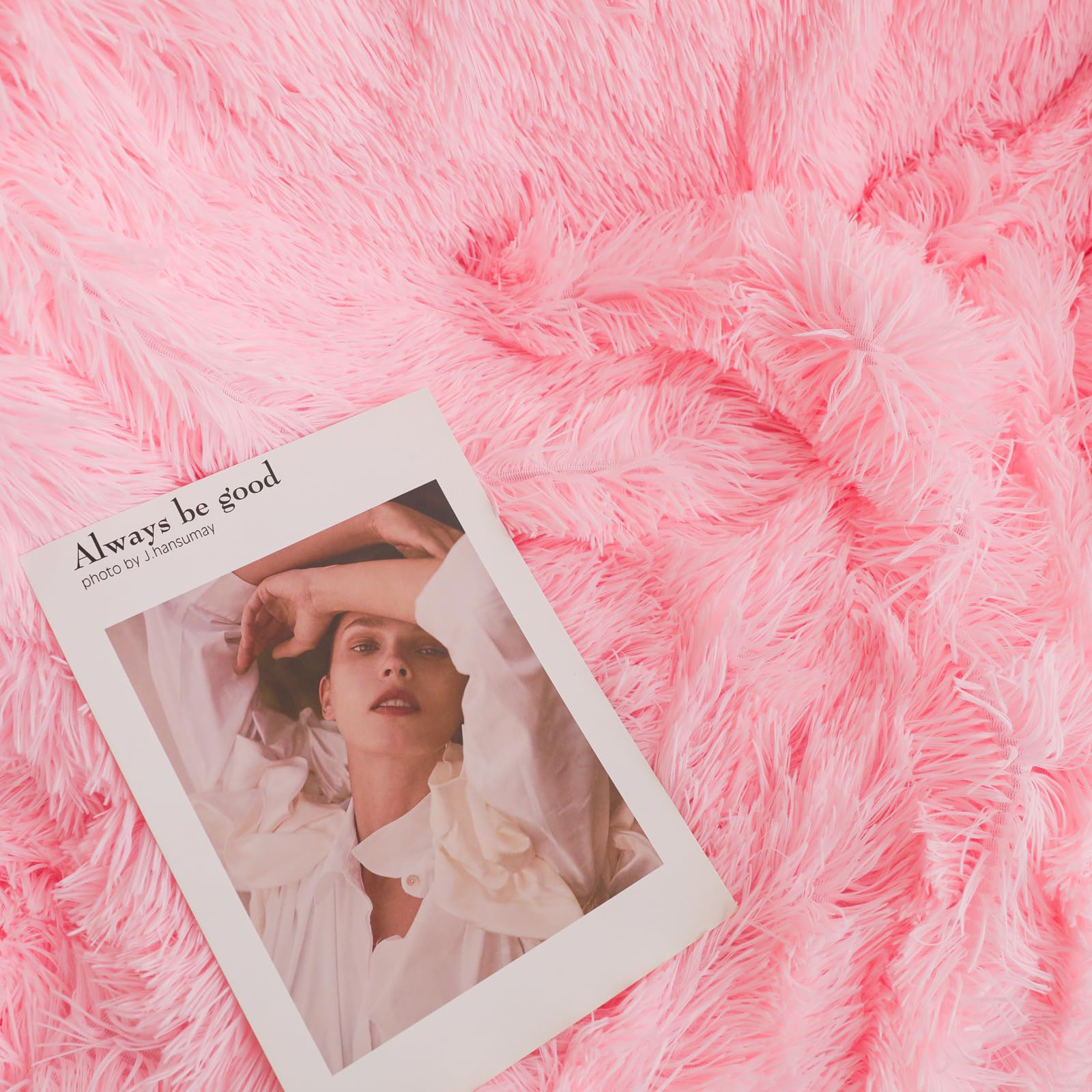 - 【SOFT FLUFFY FABRIC】These pink fuzzy blanket are made of 100% high quality polyester microfiber. 4.5cm long hair fabric and skin-friendly mink fleece reverse are seamlessly sewed together with durable seam. No fading, no deformation, and no easy to cause fiber shedding. These throw blankets are lightweight, warm (not a thick blanket) Perfect for all season. The luxurious and stylish look make it perfect for Christmas decor.