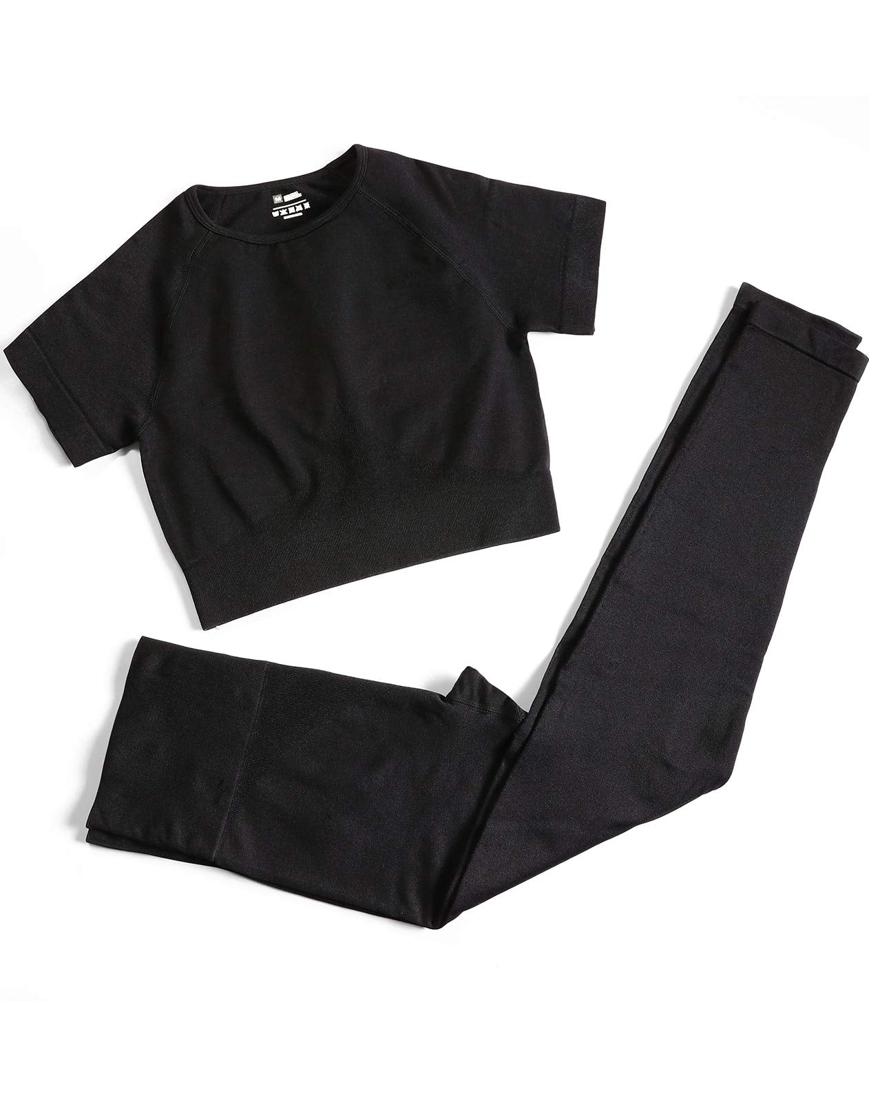 - SUPER VALUE 2 PIECE WORKOUT OUTFITS: 1 short sleeve crop top, 1 seamless yoga pants pack. Upgrade material makes the yoga clothes thick enough to cover everything. Good rebound resilience makes women’s workout clothes more durable and won’t be out of shape