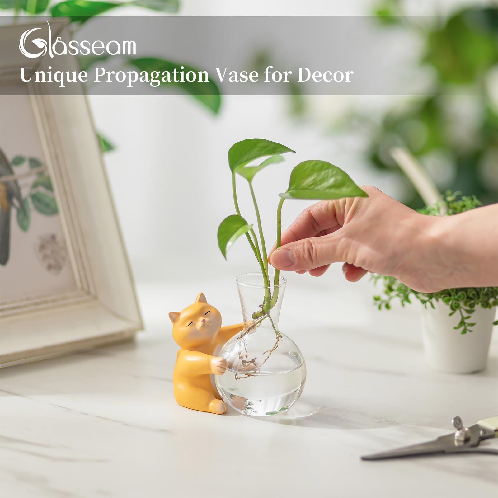 - Glasseam Plant Holder for Your Satisfaction: The cat vase is handmade, so the details cannot be as perfect as those produced by machines. Please tell us if you are unsatisfied with the item for any reason. We are always listening, and will provide the best and the most professional customer service for you.