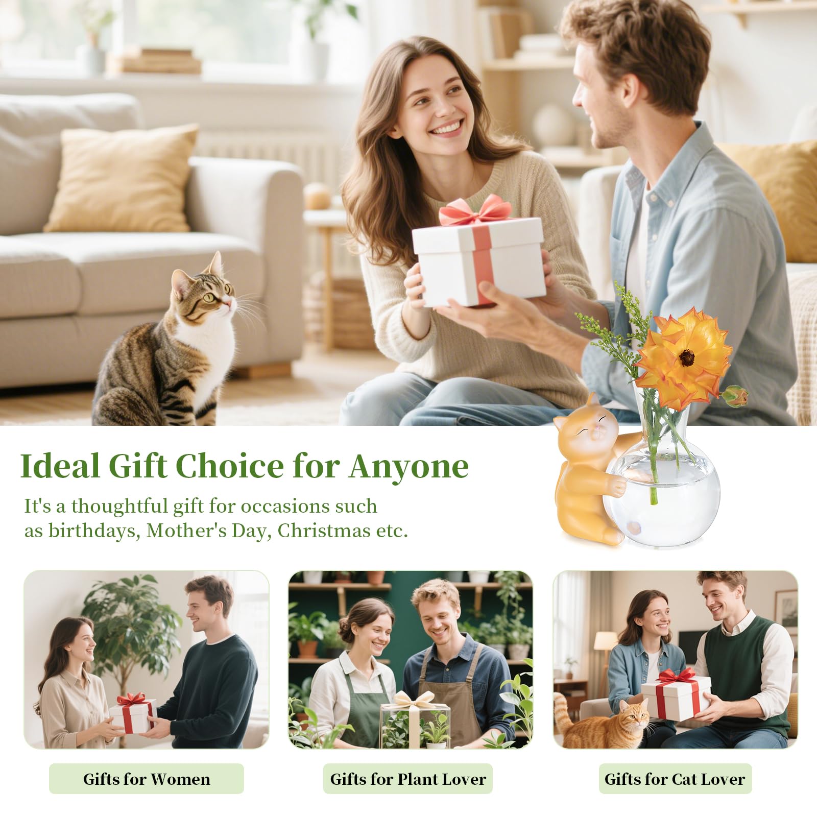- Handmade Plant Starter: This resin cat sculpture is hand-painted by skillers, featuring a lifelike expression. The bulb vase is made of high-borosilicate glass, offering a higher transparency. Great for those who seek for funky home decor, this hydroponic propagation is not only an ideal choice for cat parents and floral enthusiasts, but also a great option as birthday, Mother's day, Christmas gifts for friends, mothers, stuffs.