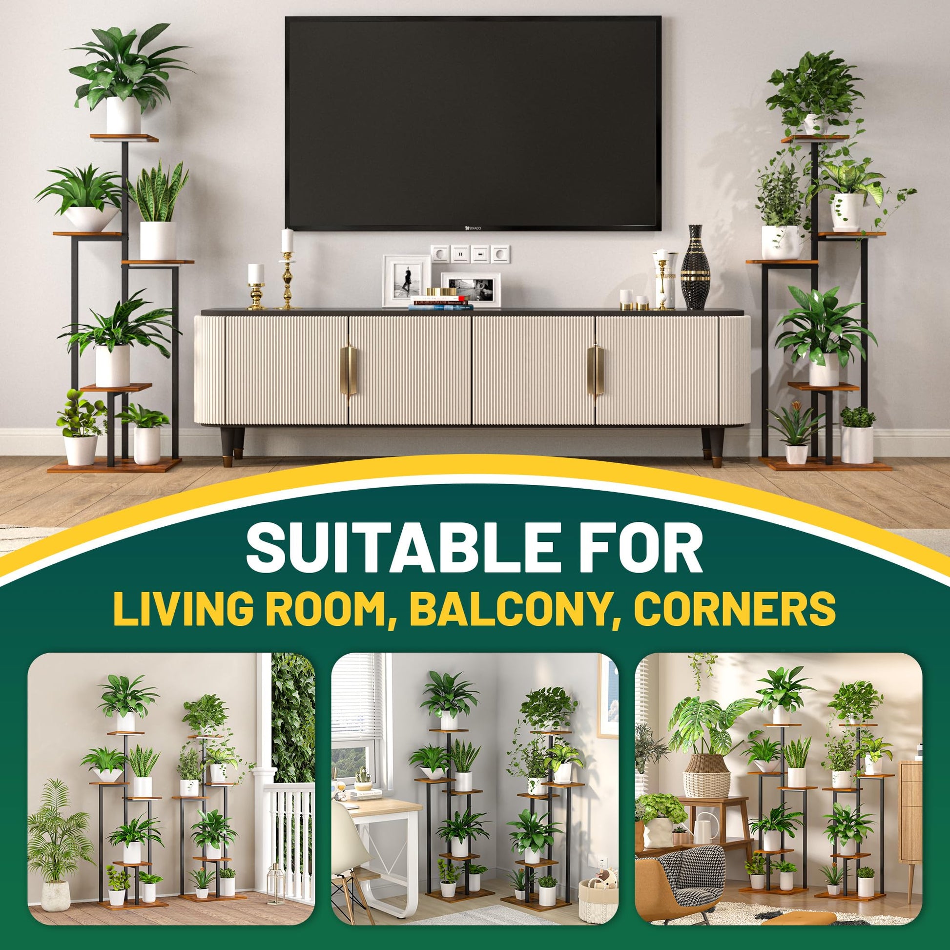 - 【2 Pack, 46' tall, 5 Tiered Plant Stands】Our set of two plant stands offers ample space for multiple medium to small-sized plants, allowing you to display as many plants as possible. In addition, it can also be used as a display stand for placing books, pictures, collections, prizes, etc. The plant stand can not only save you more space, but also add an artistic and vibrant touch to your home decoration.