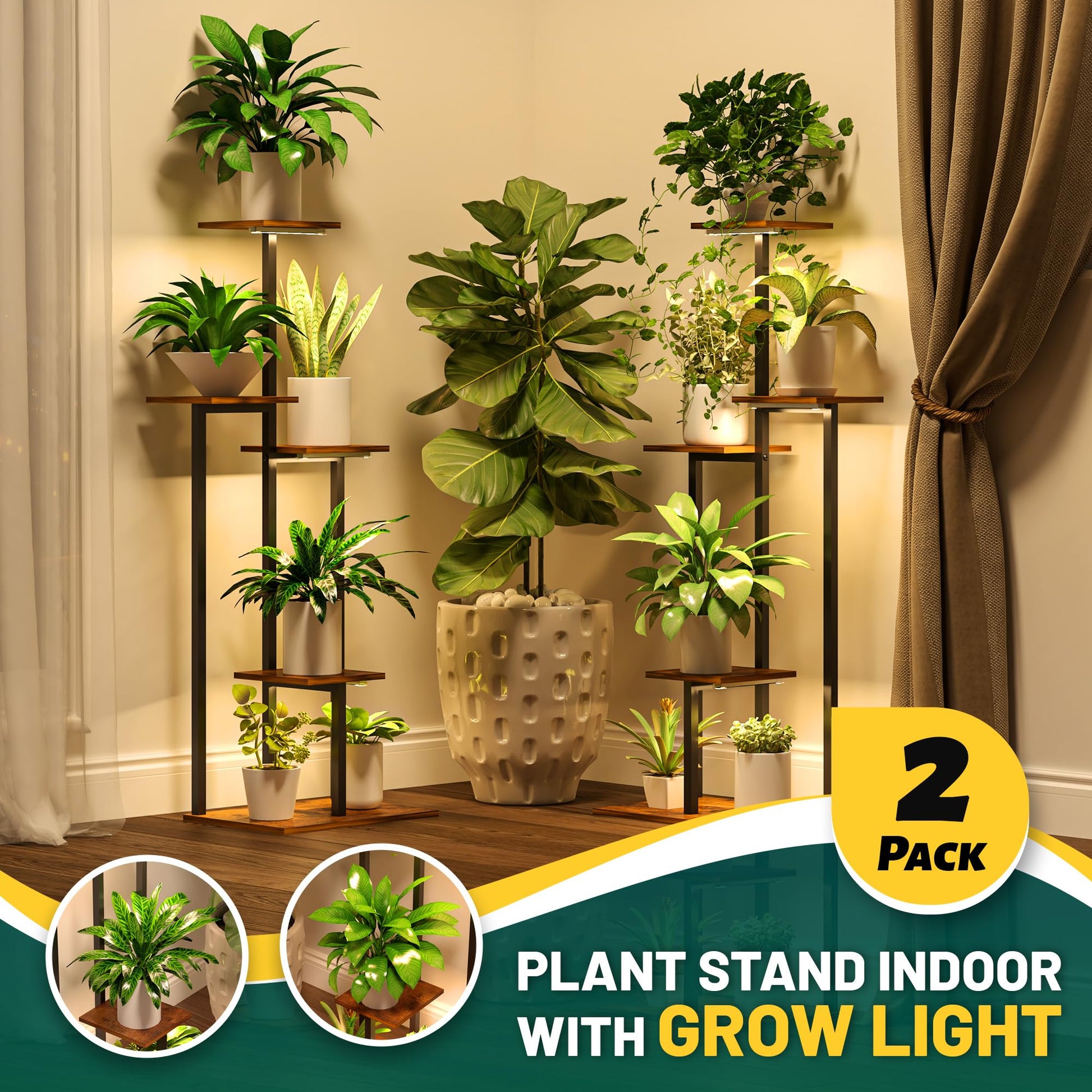 - 【Plant Stand with Grow Lights】To promote healthy plant growth, we have equipped this two-pack indoor plant stand with a total of 6 full-spectrum grow lights with 10 different brightness levels, which can provide 3/9/12 hours of timed lighting to meet the light conditions most needed by plants at different stages. The 6 grow lights ensure that plants on all levels can get sufficient light, allowing you to easily grow plants indoors without having to frequently move the plants outdoors to absorb light.