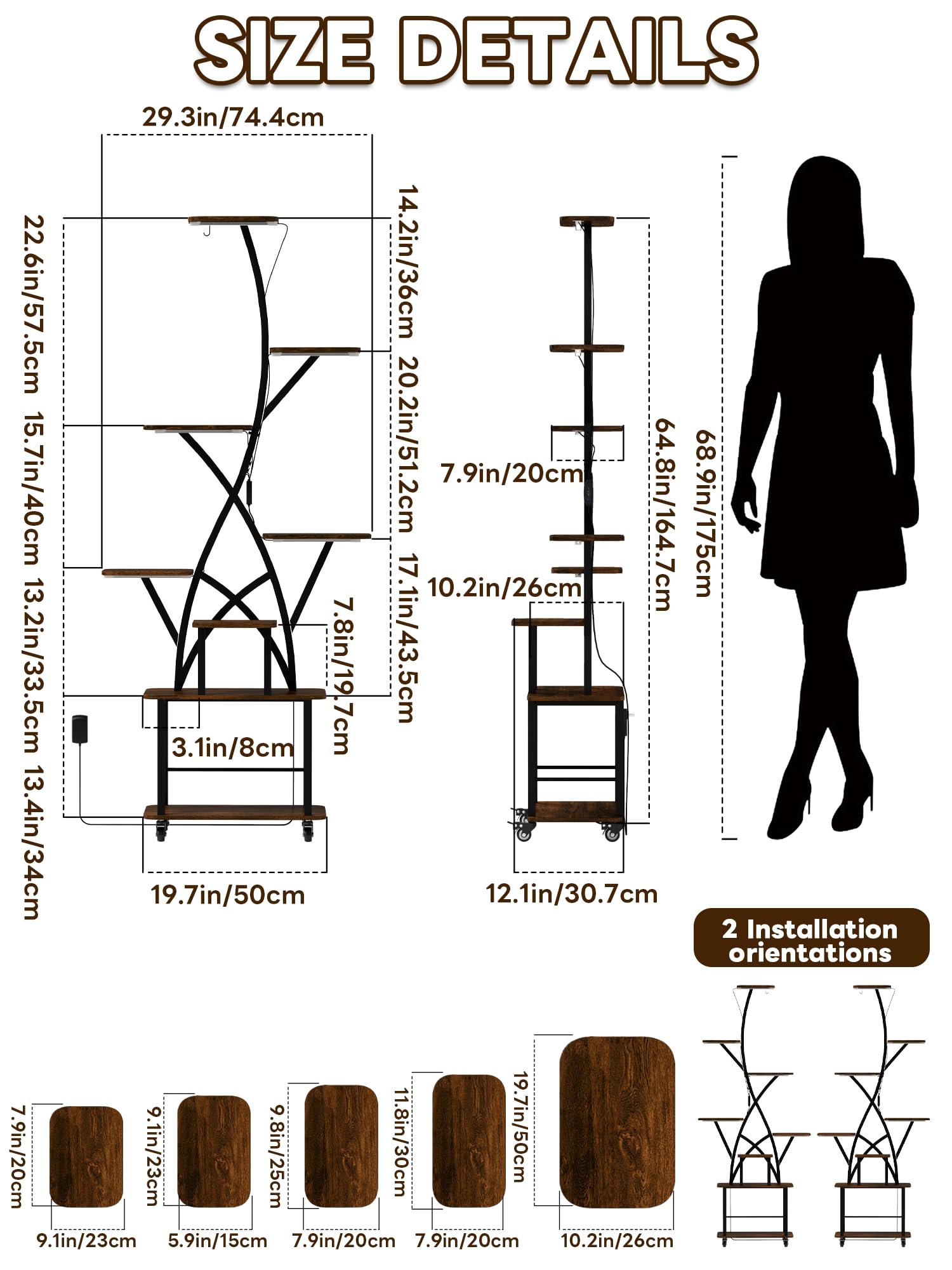 - 【8-Tier, 64' Heavy-Duty S-Shape Plant Shelf Indoor】Our 8-tier plant stand indoor provides ample space with 64' height and up to 180lb total capacity (20lb/tier). The innovative S-shape design fits corners perfectly and can be paired as matching living room displays. Features thick 0.85mm rust-proof steel frame and 15mm waterproof wood shelves that withstand daily watering without warping, making it ideal for small spaces
