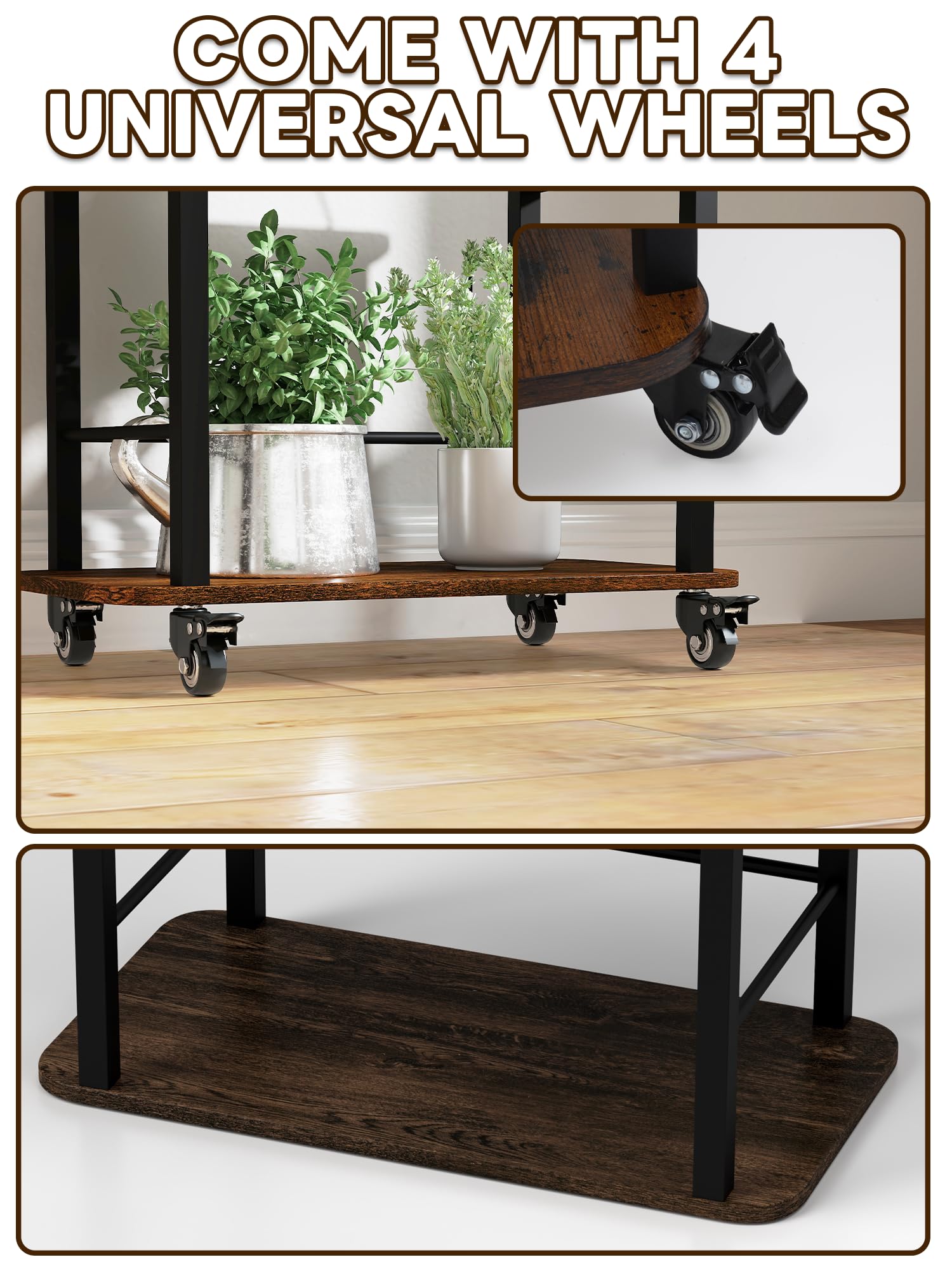 - 【Sturdy & Safe Plant Stand with Wheels】This plant stands indoor combines industrial strength with safety - heavy-duty construction supports up to total 180lbs while 4 lockable casters allow easy mobility. Come with anti-tip straps secure the unit for child/pet safety. The widen stable base and reinforced frame ensure stability even on uneven floors