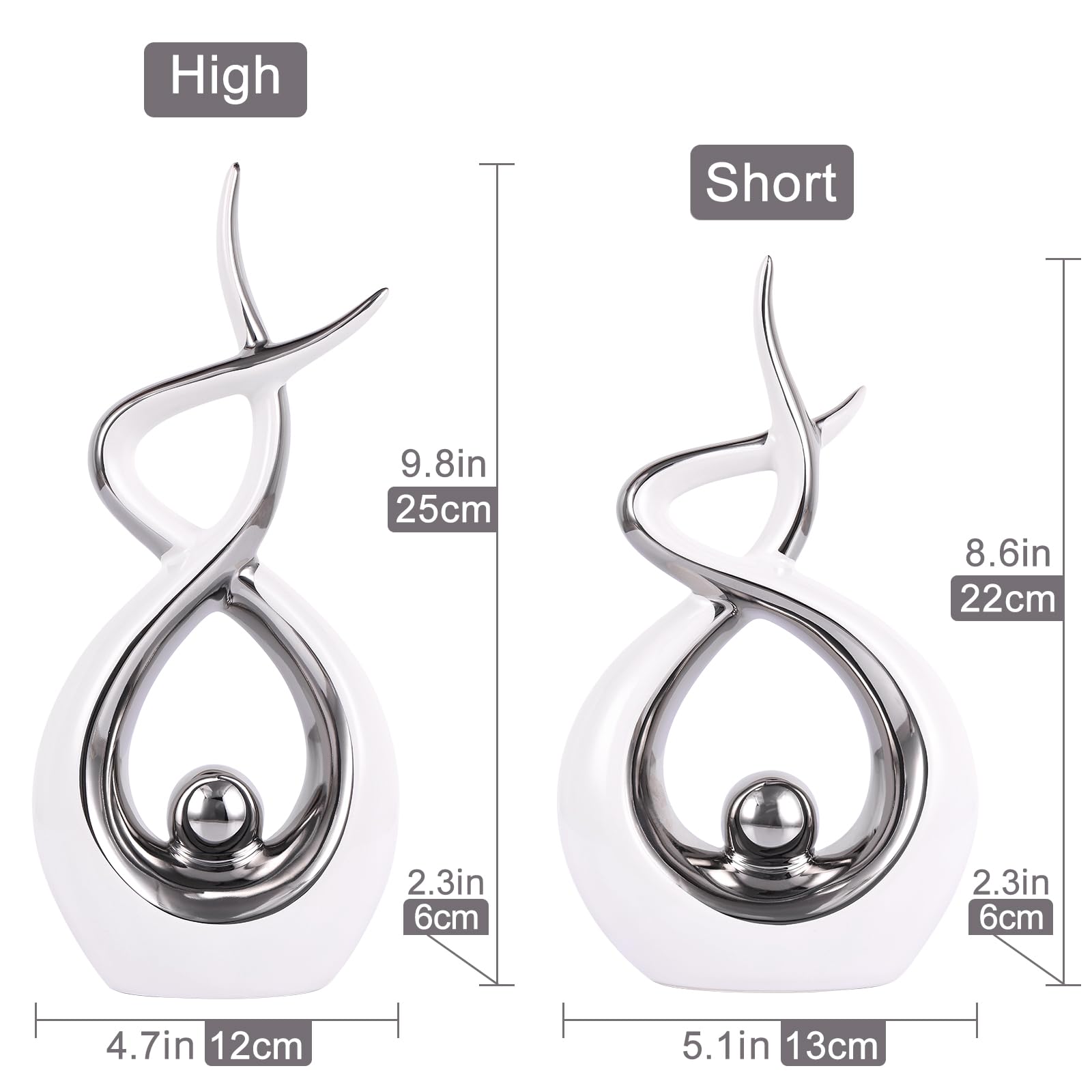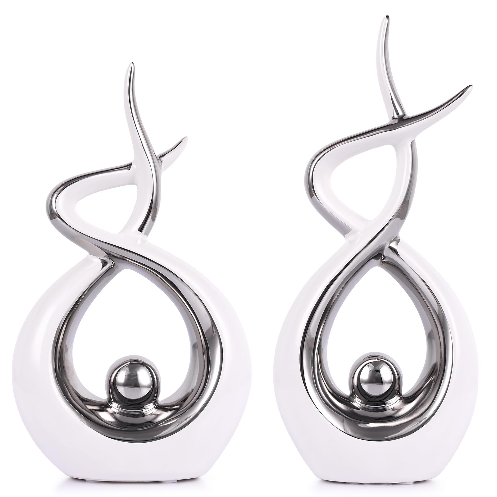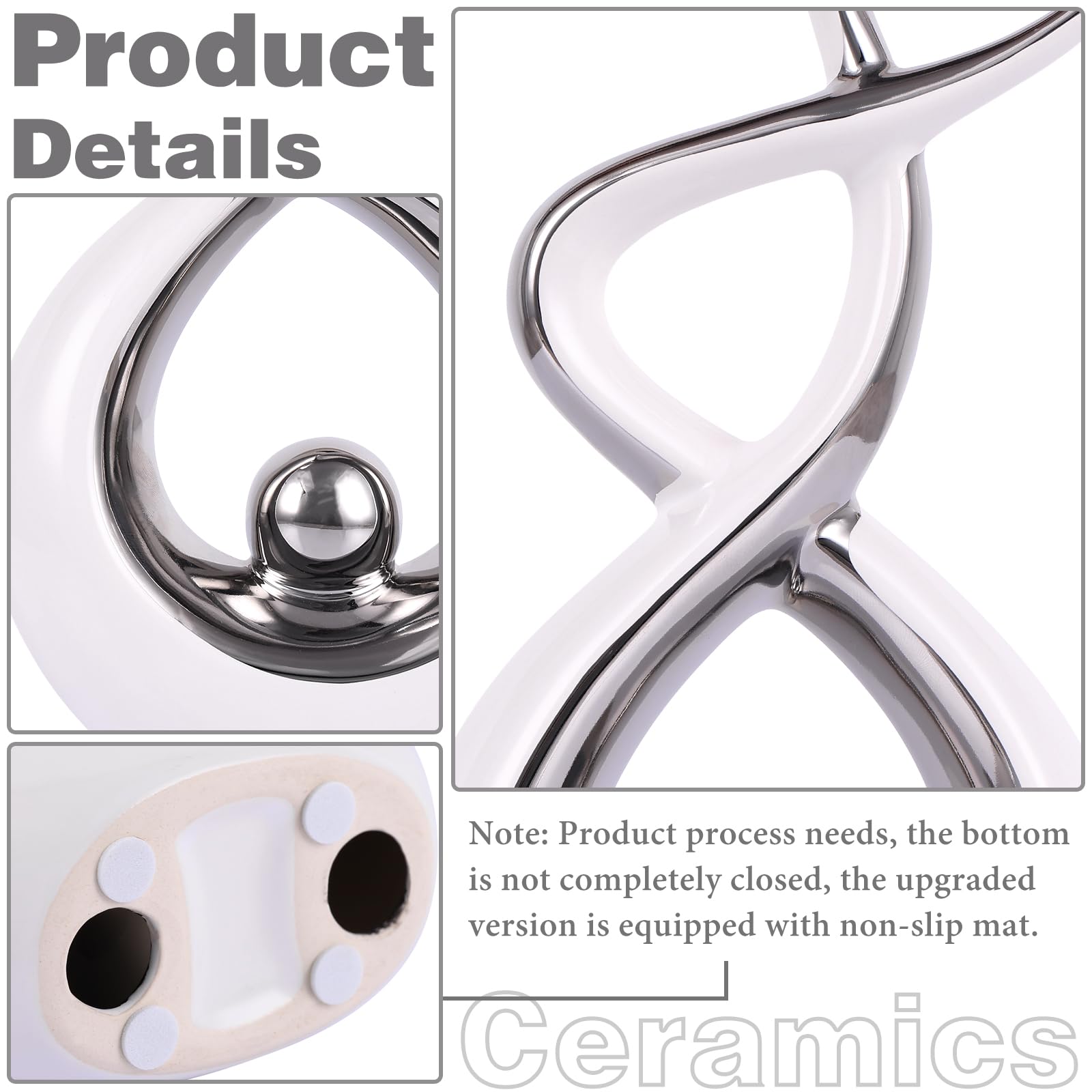 PlivBloom Silver White Abstract Ceramic Modern Sculpture, Knick Knacks Statues for Living Room, Shelf, TV Stand, Coffee Table, Dining Room, Office, Bedroom, Home Decor, Centerpiece, Great Gift Idea