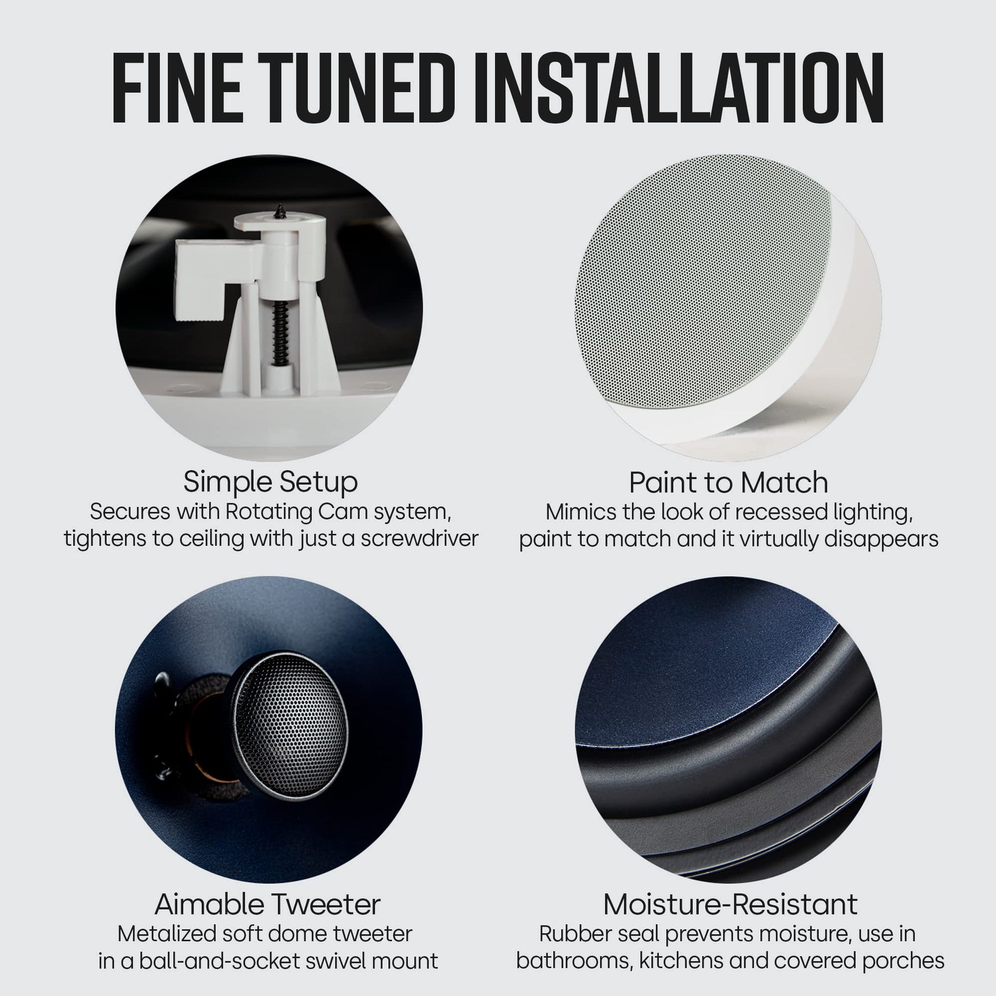 - NO MESS, NO EXTRA ASSEMBLY - In 3 simple steps QUICKLY & EASILY INSTALL the RC80i speakers. With paintable aluminum grilles you can MATCH YOUR EXISTING INTERIOR and virtually make them disappear