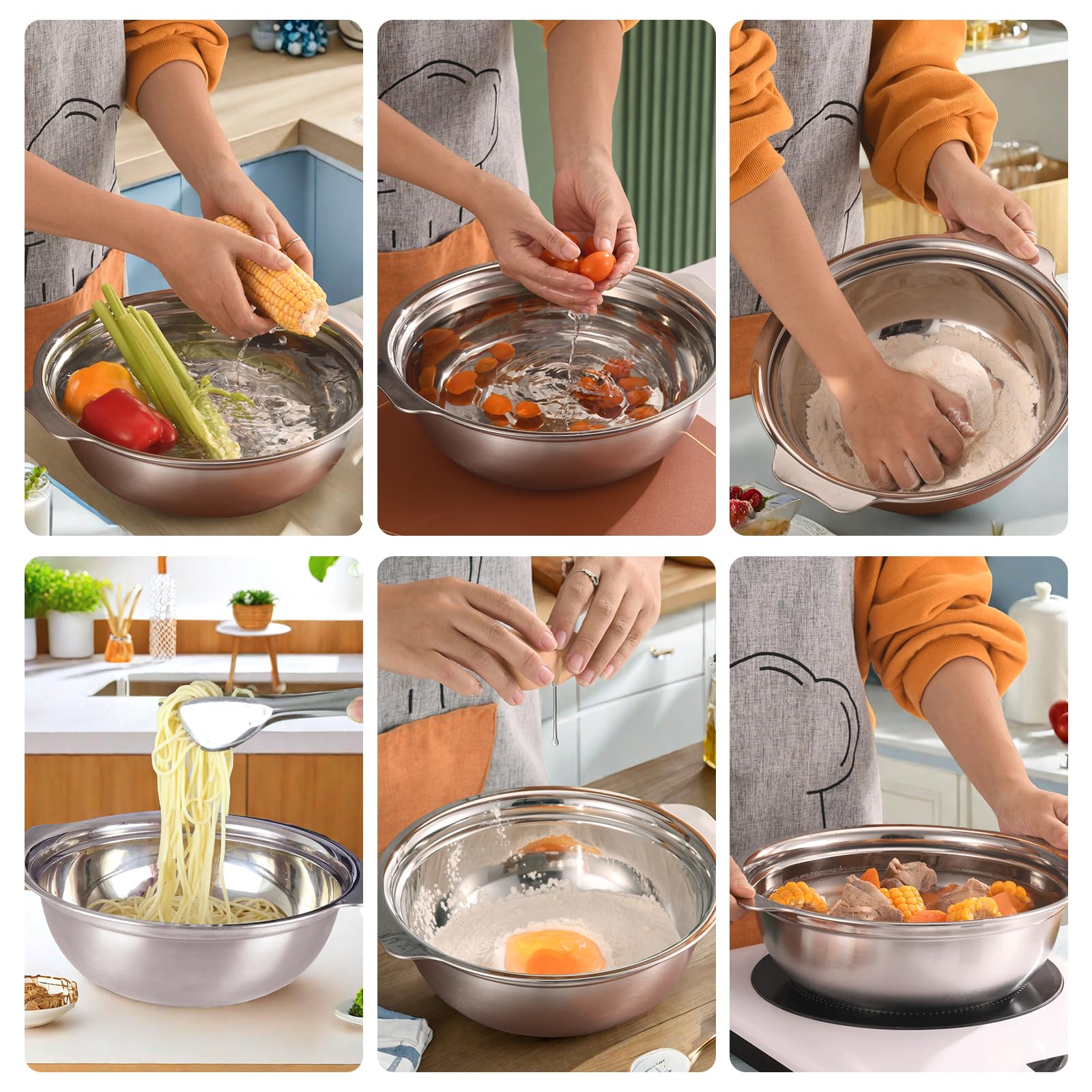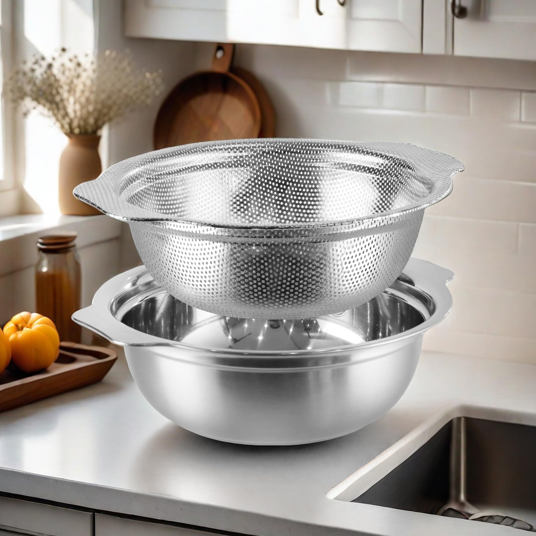 - Stainless Steel Colander: Colander bowl set is made of safe, healthy and durable material, the holes of the strainer are dense and uniform, which can drain quickly. they are an indispensable tool in the kitchen for easy cleaning and food preparation.