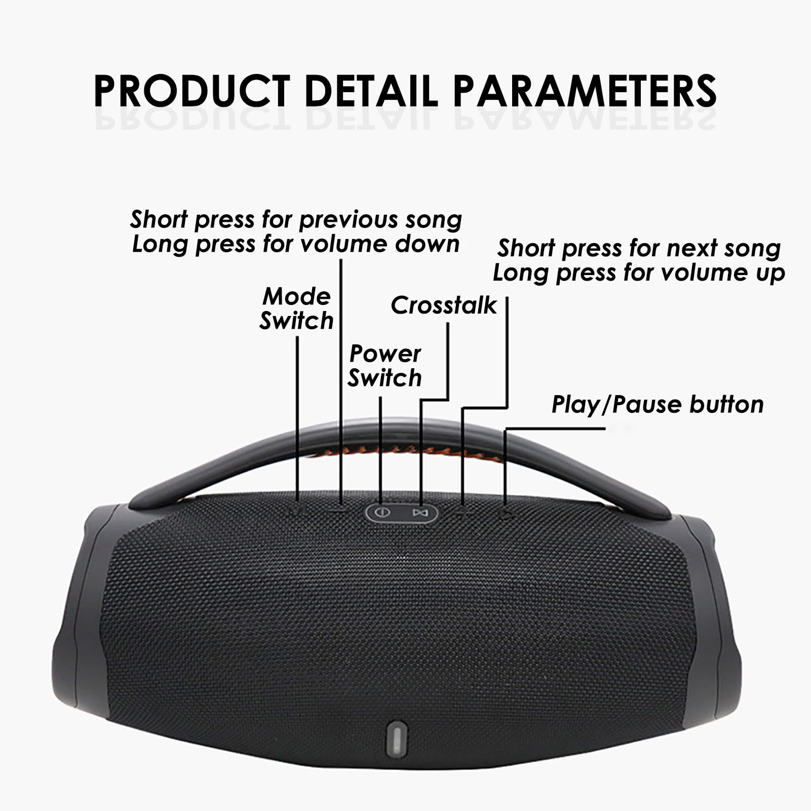 Details: 1. Excellent Sound: Portable speaker is surround sound, producing super loud sound and thunderous bass with good sound quality.