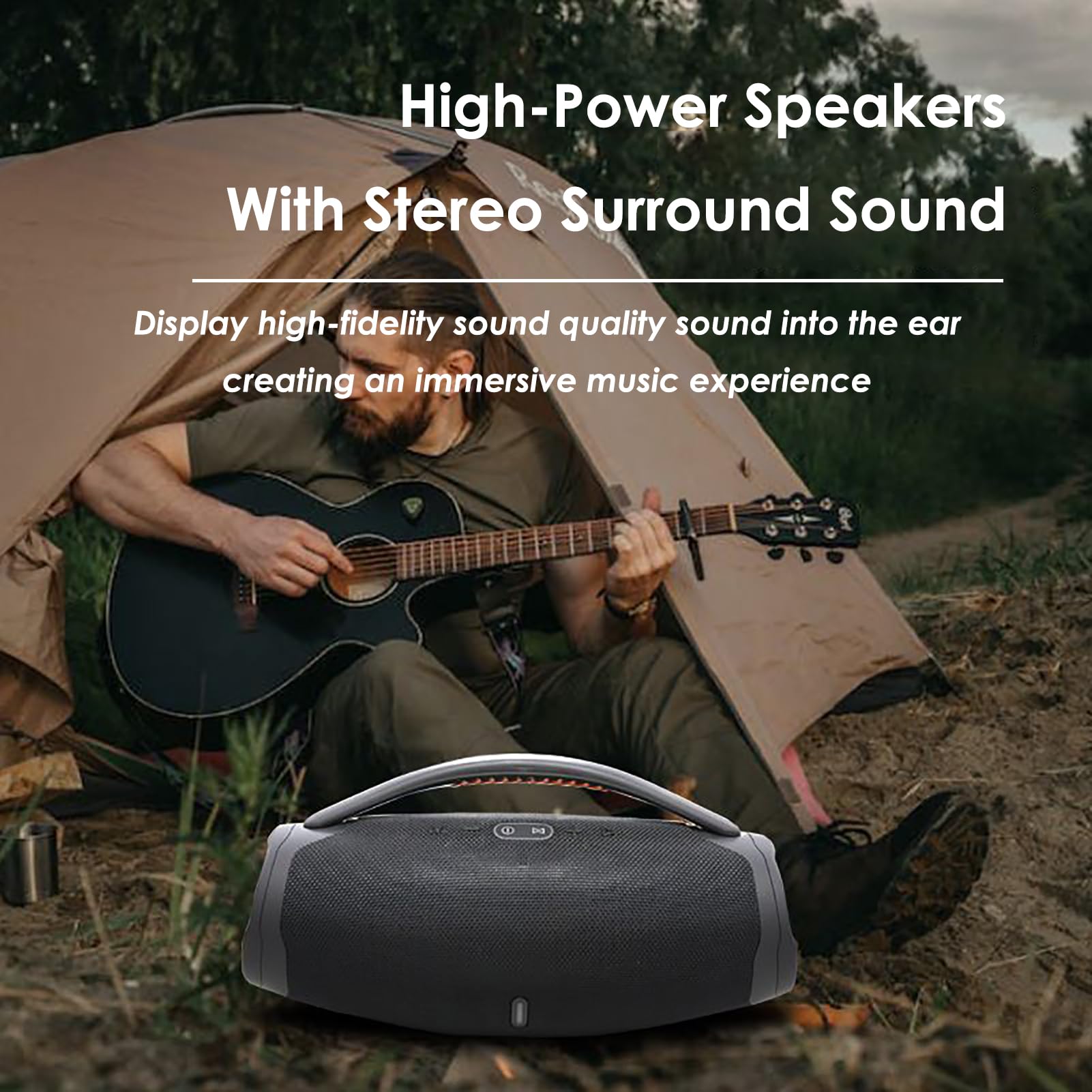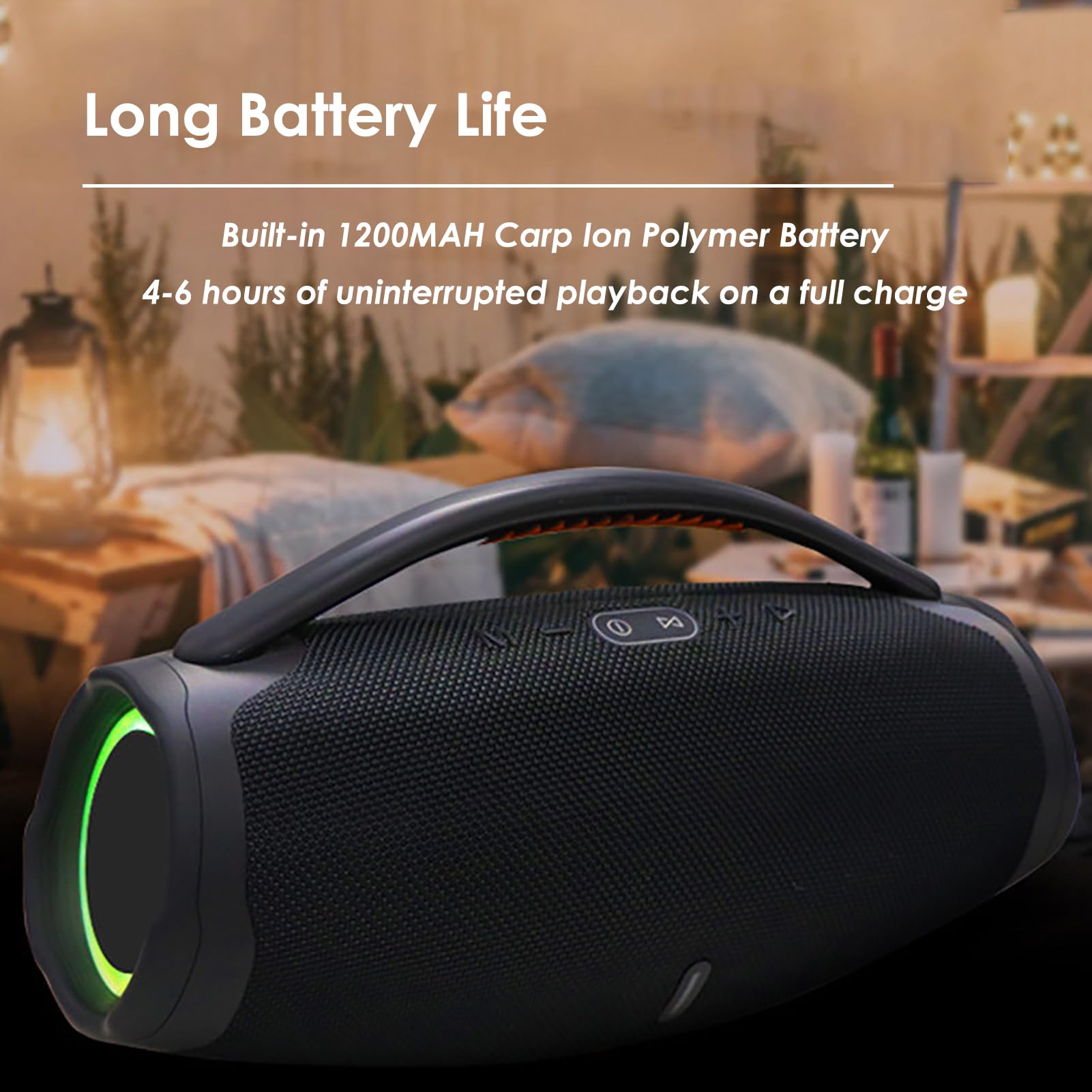 - 【LARGE BATTERY CAPACITY AND LONG PLAYING TIME】: The speaker is equipped with a 2000-4000mAh rechargeable battery, the large capacity battery allows you to play music continuously for 24 hours, this large party speaker is for camping, hiking or any other outdoor activities.