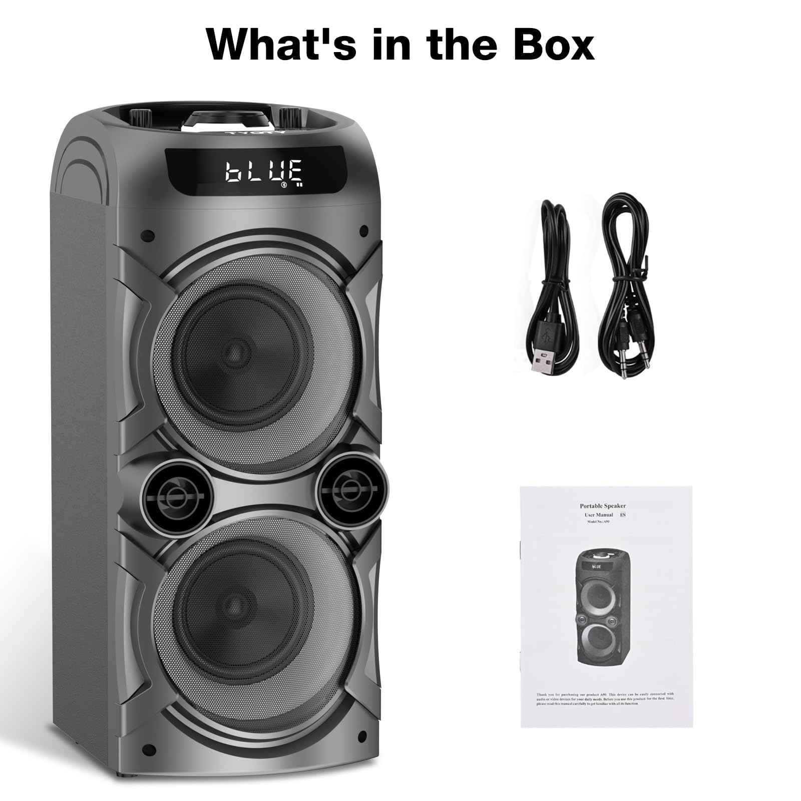 - ♫ 【What's in the package】 The Package includes the A93 party speaker x 1, USB charger cable x 1, 3.5mm AUX cable x 1, user manual x 1. ( NOTE: If you have any questions, please contact us, we will reply you within 7-24 hours to provide you with the best customer service ).