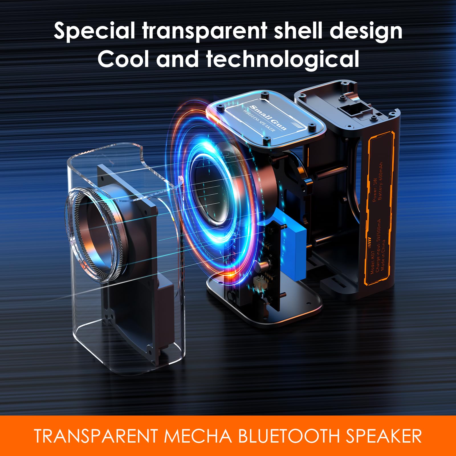 - ♬【Transparent mecha style】 K07 Bluetooth wireless speaker is made of transparent and environmentally friendly ABS, with exquisite design, making it an ideal gift for any anniversary, birthday party, holiday celebration, outdoor camping, or special occasions. If you encounter problems you can always contact us, Our customer service staff will reply to you within 12 hours and help you finally solve the problem, so that you get 100% quality