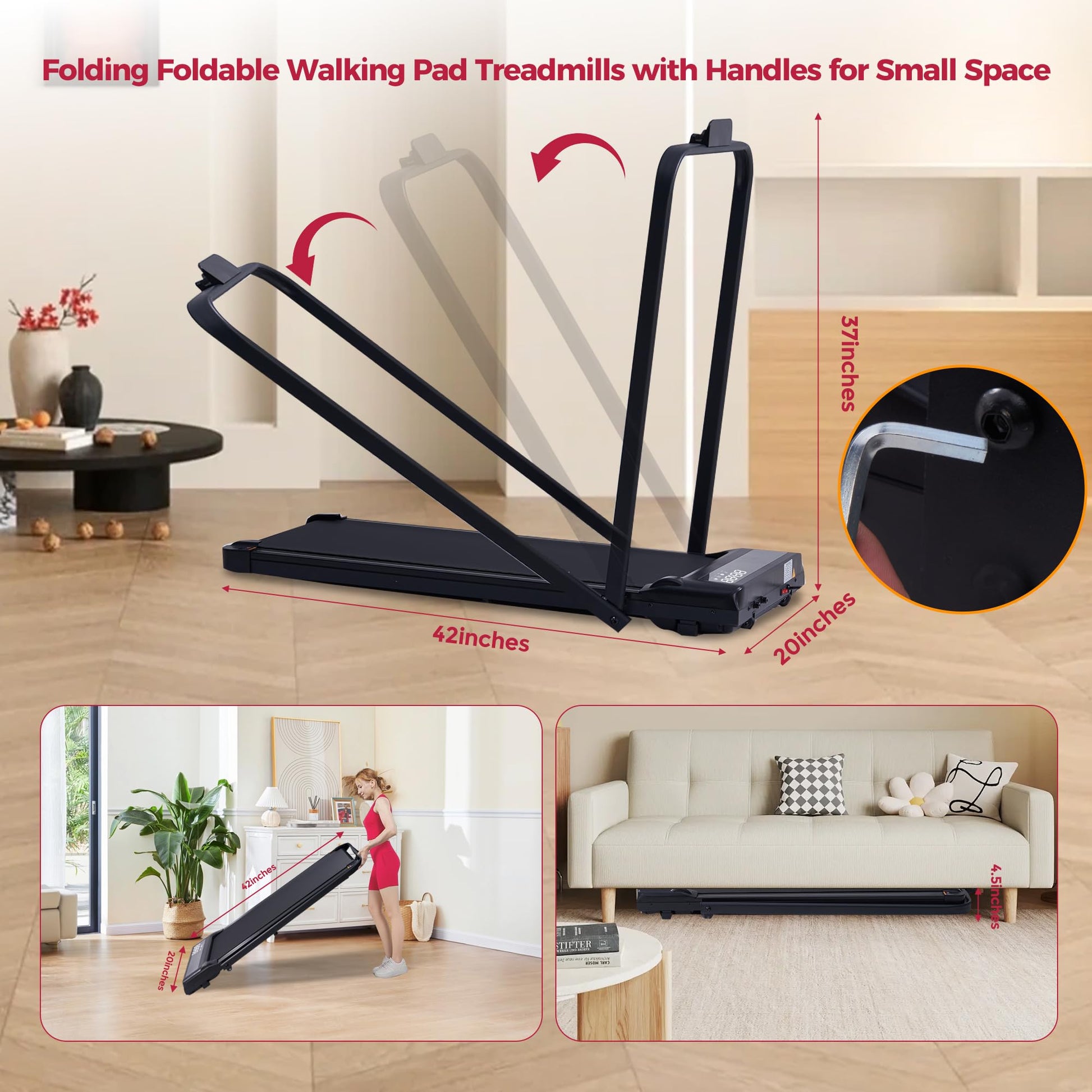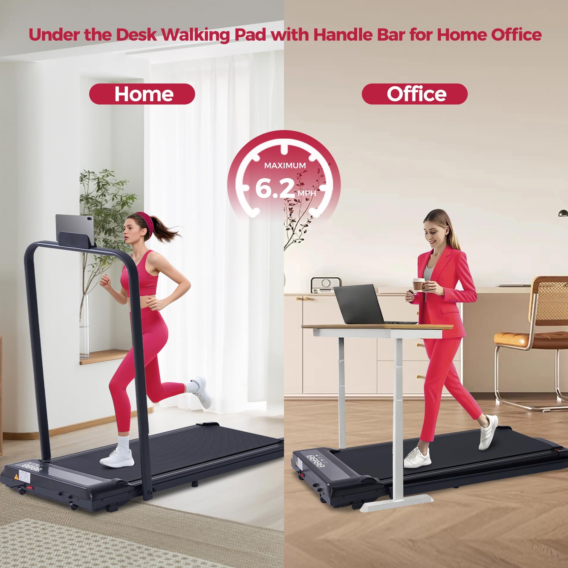 - Walking Pad Treadmill with Handle Bar