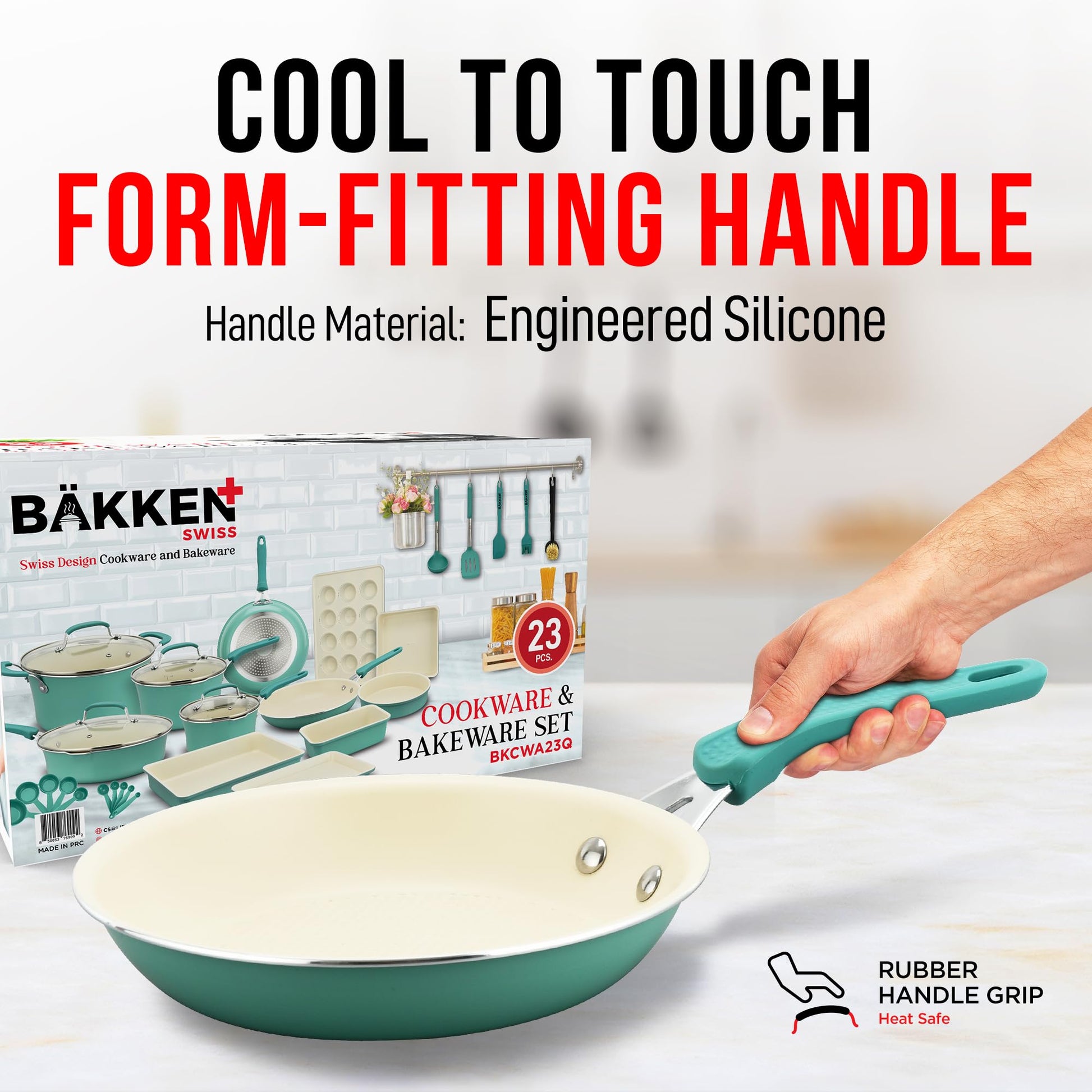 - DURABLE CONSTRUCTION: Made with a harder nonstick coating and aluminum material, this 23-piece bakeware set ensures even heat distribution for perfect cooking without warping. The nonstick coating makes food easy to release and cleanup a breeze.