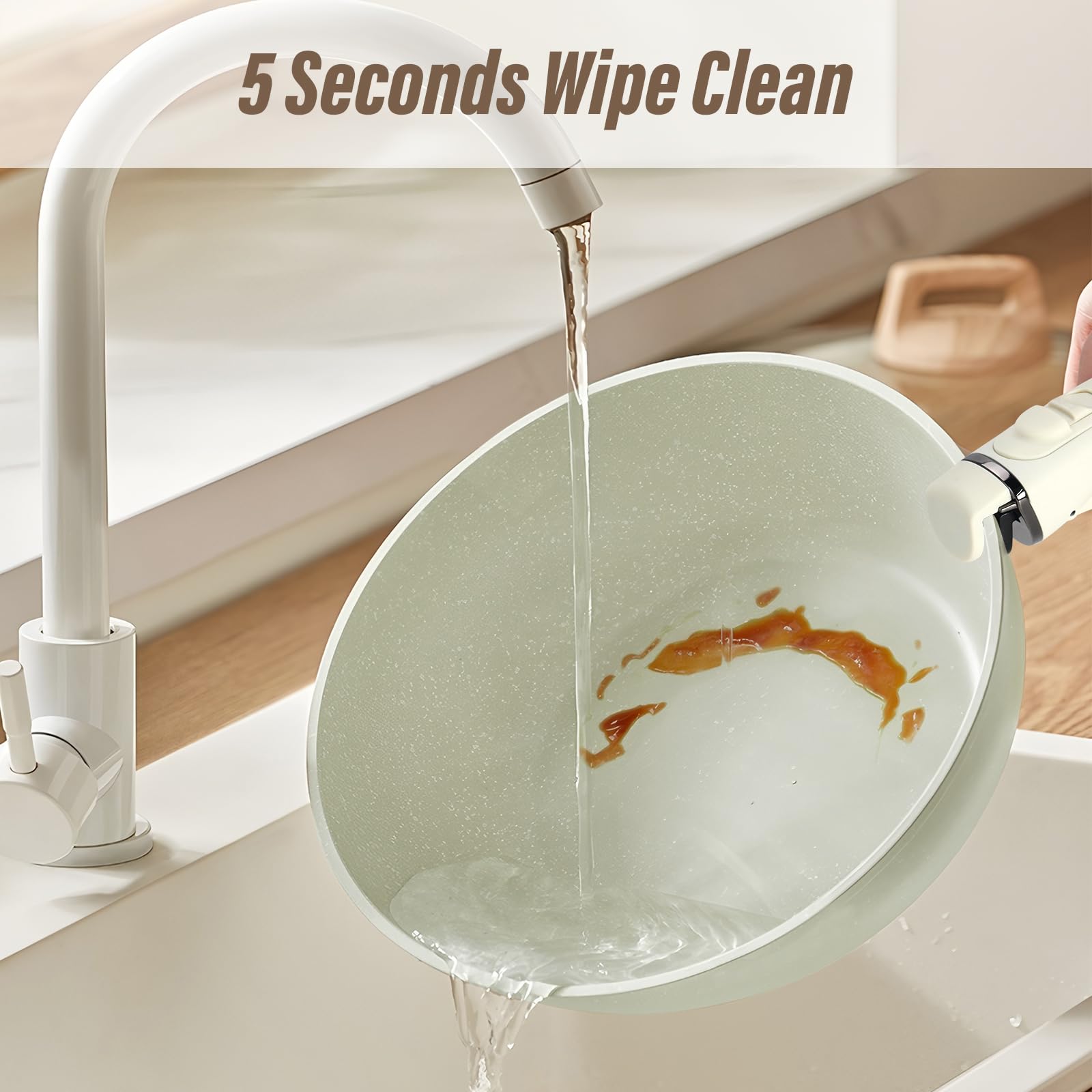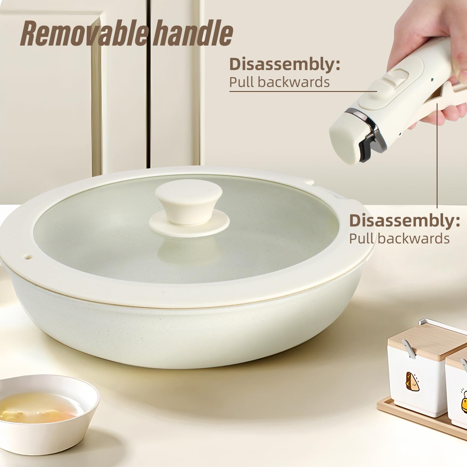 - 🍳11-PCS MULTIFUNCTIONAL COOKWARE SET: Includes frying pan, wok, milk pan, pizza pan, and more (with detachable handle + spatula). Perfect for frying, stir-frying, baking, and stewing. The pots and pans set has everything for daily cooking – ideal for beginners and pros alike!
