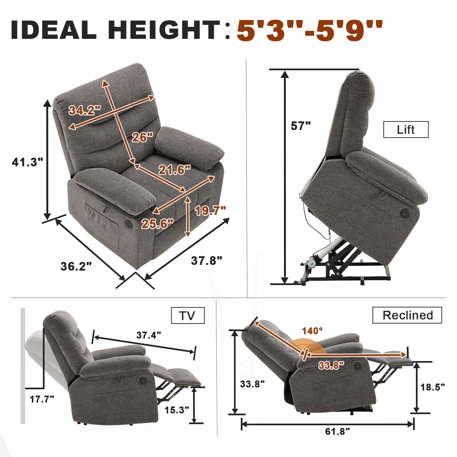 Details: Oversized Power Lift Recliner Chair For Elderly, Electric Recliner For Heavy Duty Adult, Chenille Fabric Lift Chair,Usb Ports(Grey)