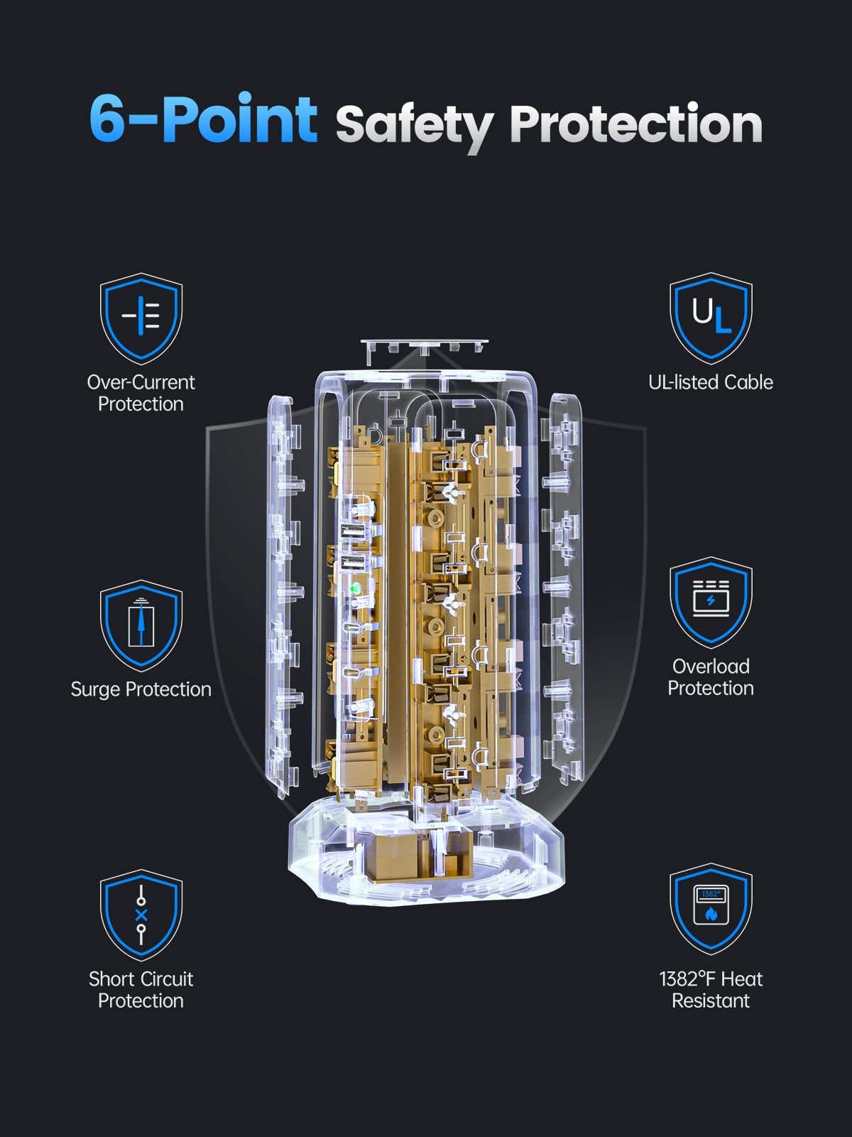 - Multi-Safety Protection Surge Protector with USB Ports:This surge protector power strip is equipped with multiple safety features, including 1800J surge protection, overload protection, 1382°F overheat protection, and short-circuit protection. It’s ideal for power strips with surge protection, protecting your valuable devices in any office desk setup from hazards like lightning strikes and overloads. It’s also a great charging station for multiple devices, combining safety and convenience for your office supplies