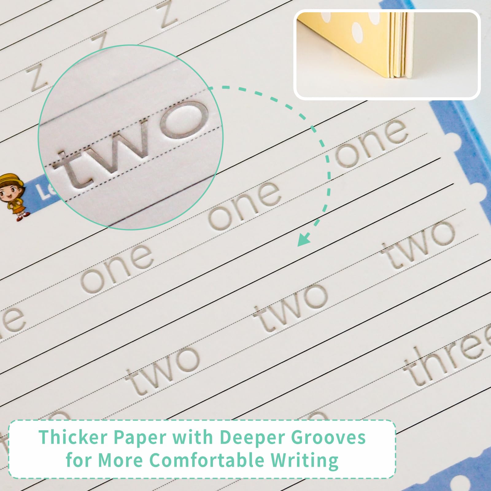 Premium Grooved Handwriting Practice for Kids, Reusable Children's Magic Copybook with Pencil Grips and Pouch, Large Size Calligraphy Workbooks Kit for Pre-School, Kindergarten(30 Refills)