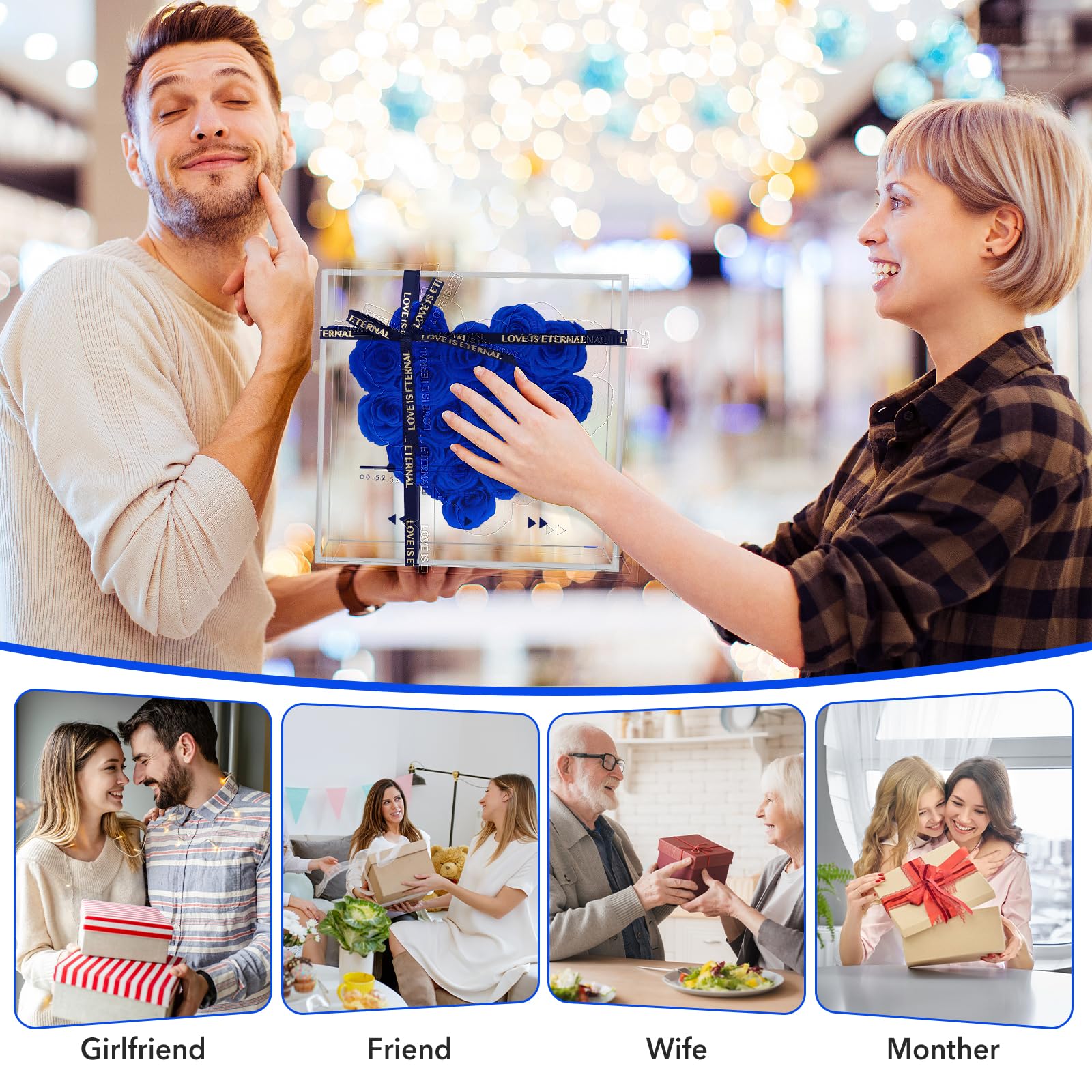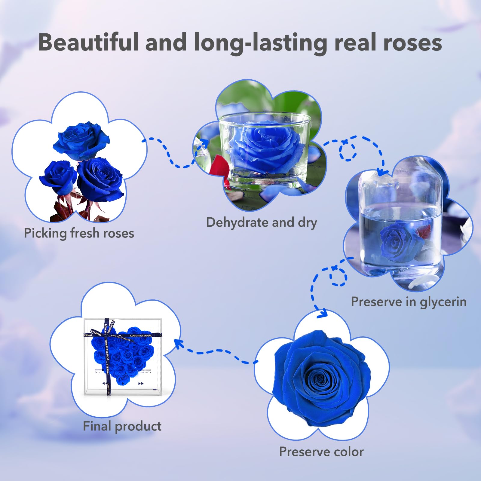 - Perfect Gift: Our preserved flower gift box is a great gift to express love, blessings and gratitude, available in red, pink, blue and purple, suitable for any woman, can be used as a precious gift for birthdays, anniversaries, Valentine's Day, Christmas, Mother's Day and other special holidays.