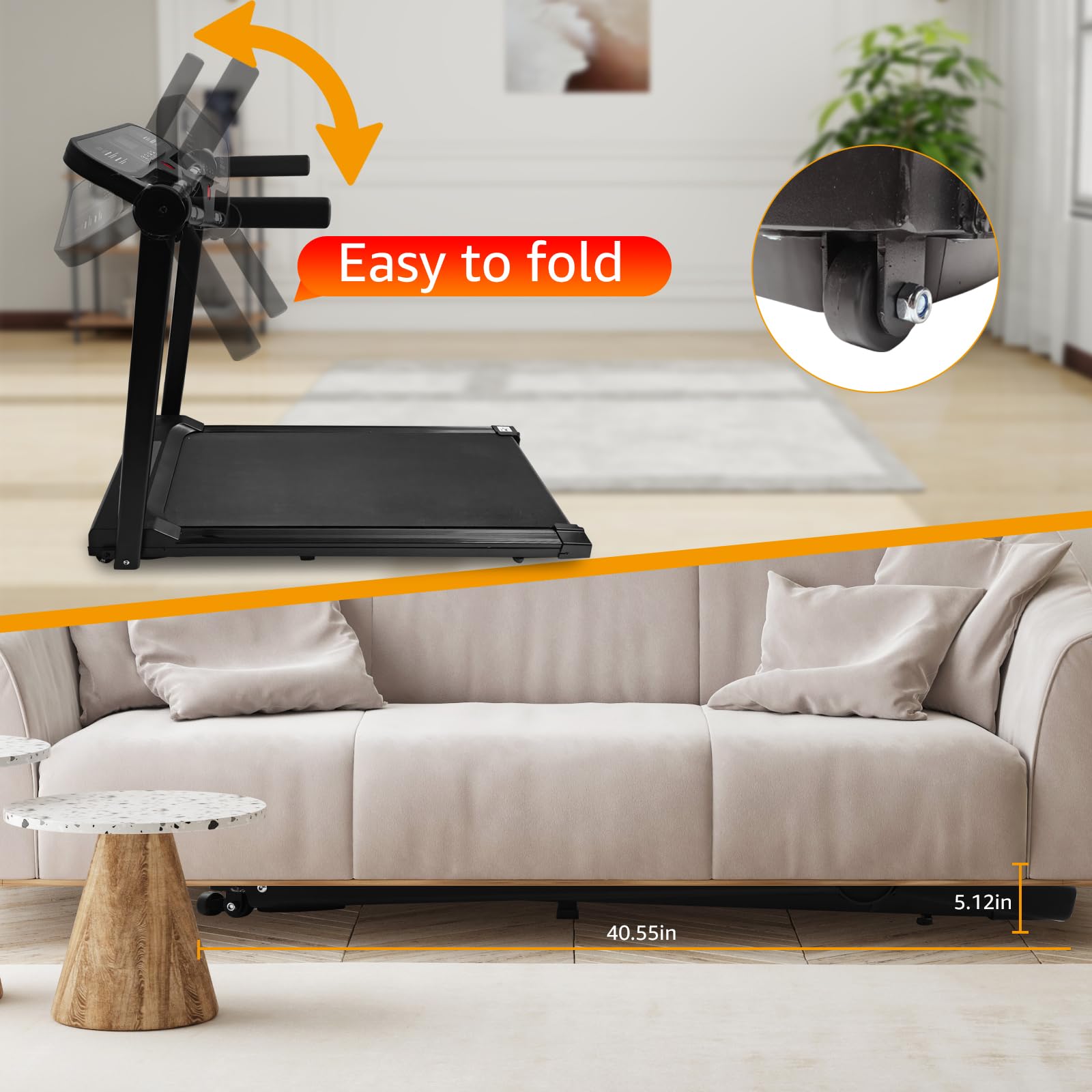 - Compact & lightweight design: The treadmill is easy to store in small spaces such as apartments or dorm rooms. The running belt is 40.6 inches long and 19.3 inches wide, providing ample space for users to walk or run. This treadmill is pre-lubricated at the factory, and there is no need to apply treadmill lubricant to the belt when using it for the first time. This feature is designed to extend the life of the treadmill and improve its performance.