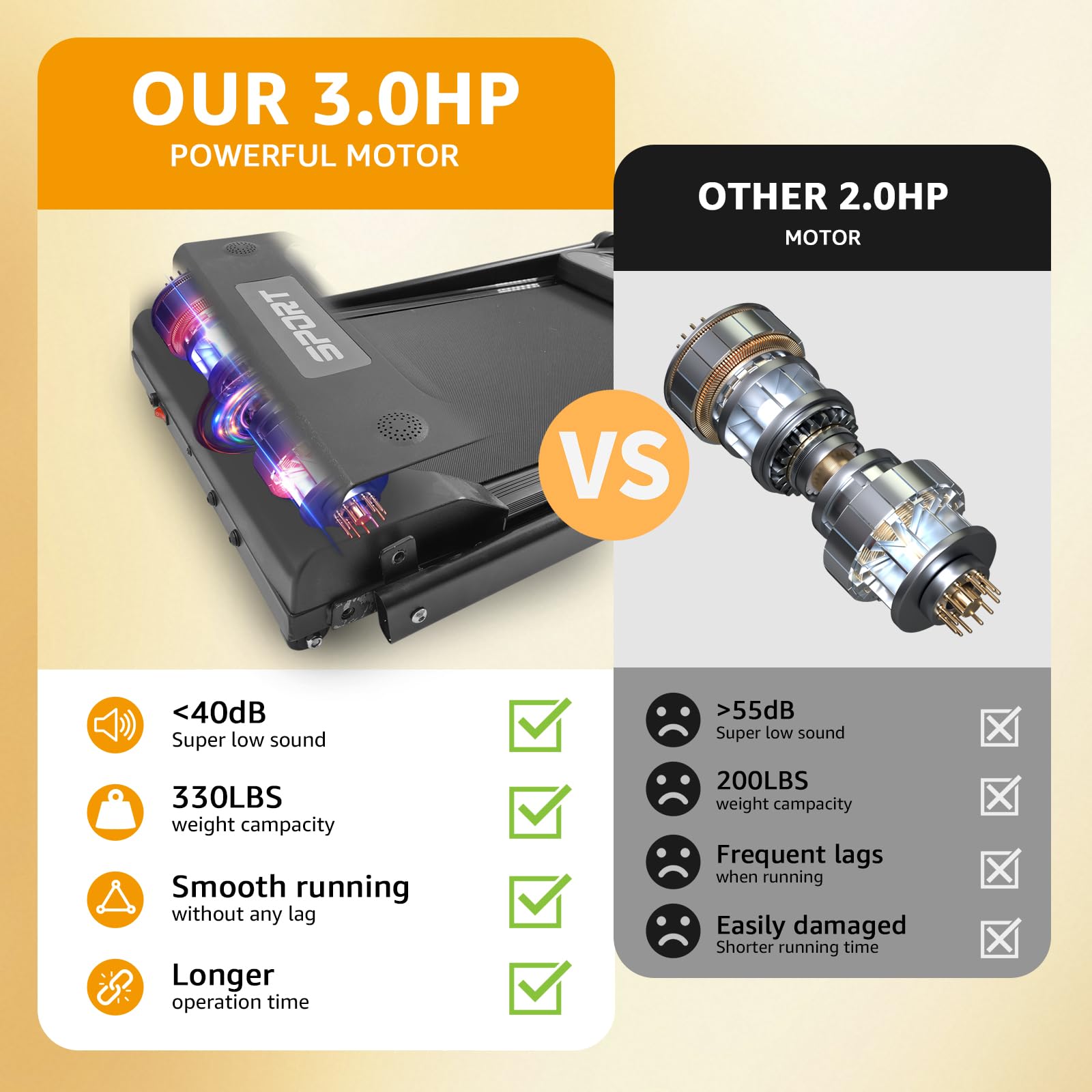 - Powerful & Quiet Motor: The Walking pad treadmill has a maximum power of 3.0 HP. It can support users up to 330 lbs (about 150 kg). This portable treadmill has a speed range of 0.6-6.2 mph and noise level is less than 45 dB, ensuring quiet and smooth operation for indoor workouts.