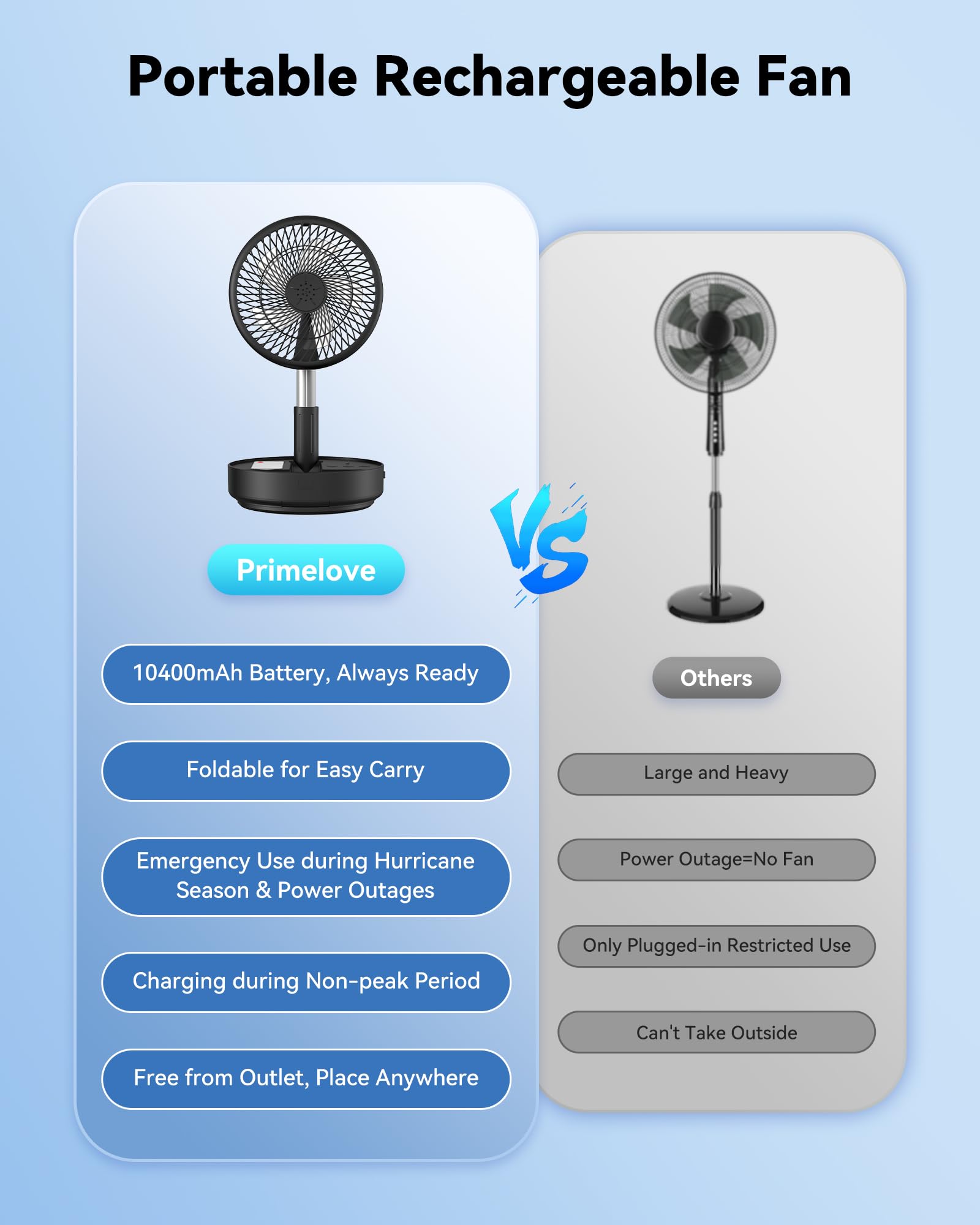- Portable & Versatile: The rechargeable fan features an adjustable and foldable design that is very easy to store and carry. It could be used on countertop as desk fan, ground as floor fan and bedroom as standing fan to meet your different needs