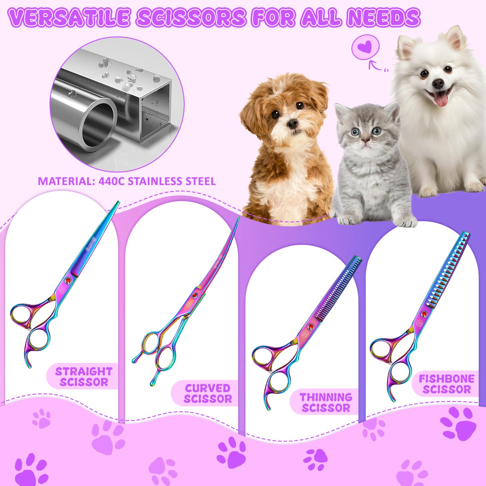 - AFTER-SALES SERVICE - We are a professional dog grooming scissors manufacturer, very confident in the quality of the products, we supply 100% money back with our best service for your no risking purchasing, VISIT OUR STORE FOR MORE INTERESTING PRODUCTS!