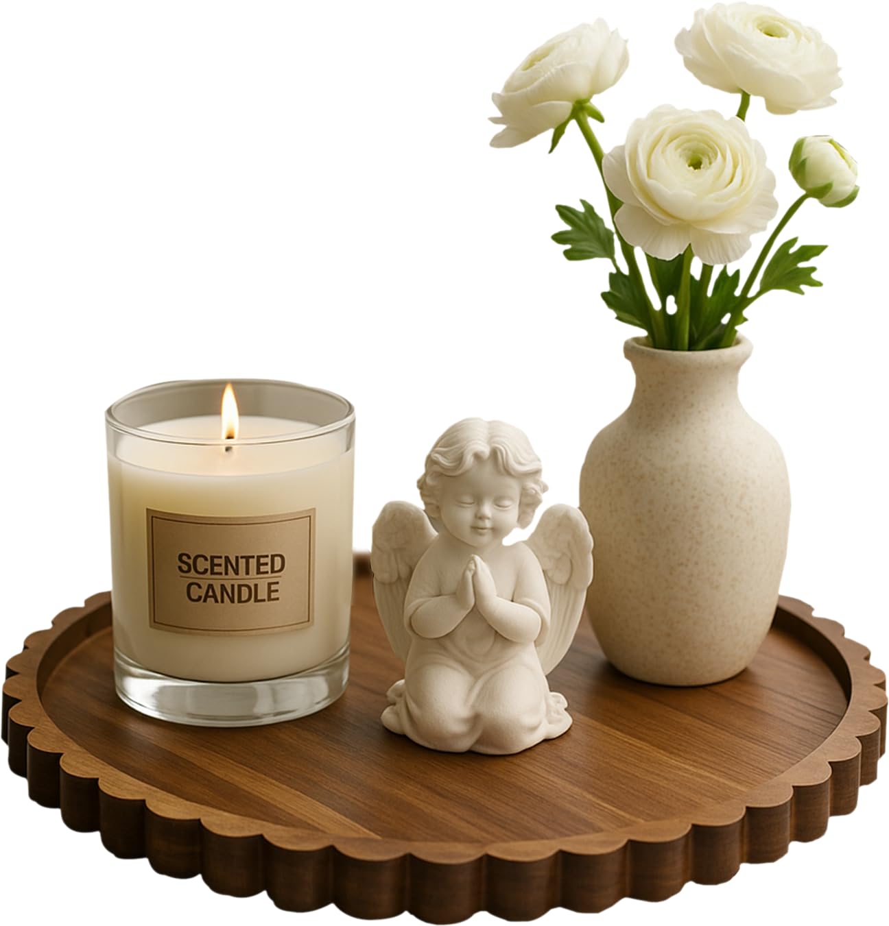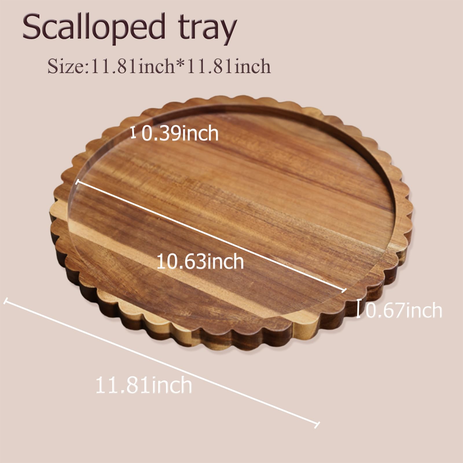 - ELEVATE YOUR DECOR WITH A UNIQUE EDGE DESIGN: Discover the distinctive wavy scalloped edge surrounding this round decorative tray.This elegant and eye-catching design sets your wood tray apart,bringing a touch of sophisticated flair and visual interest to any surface.