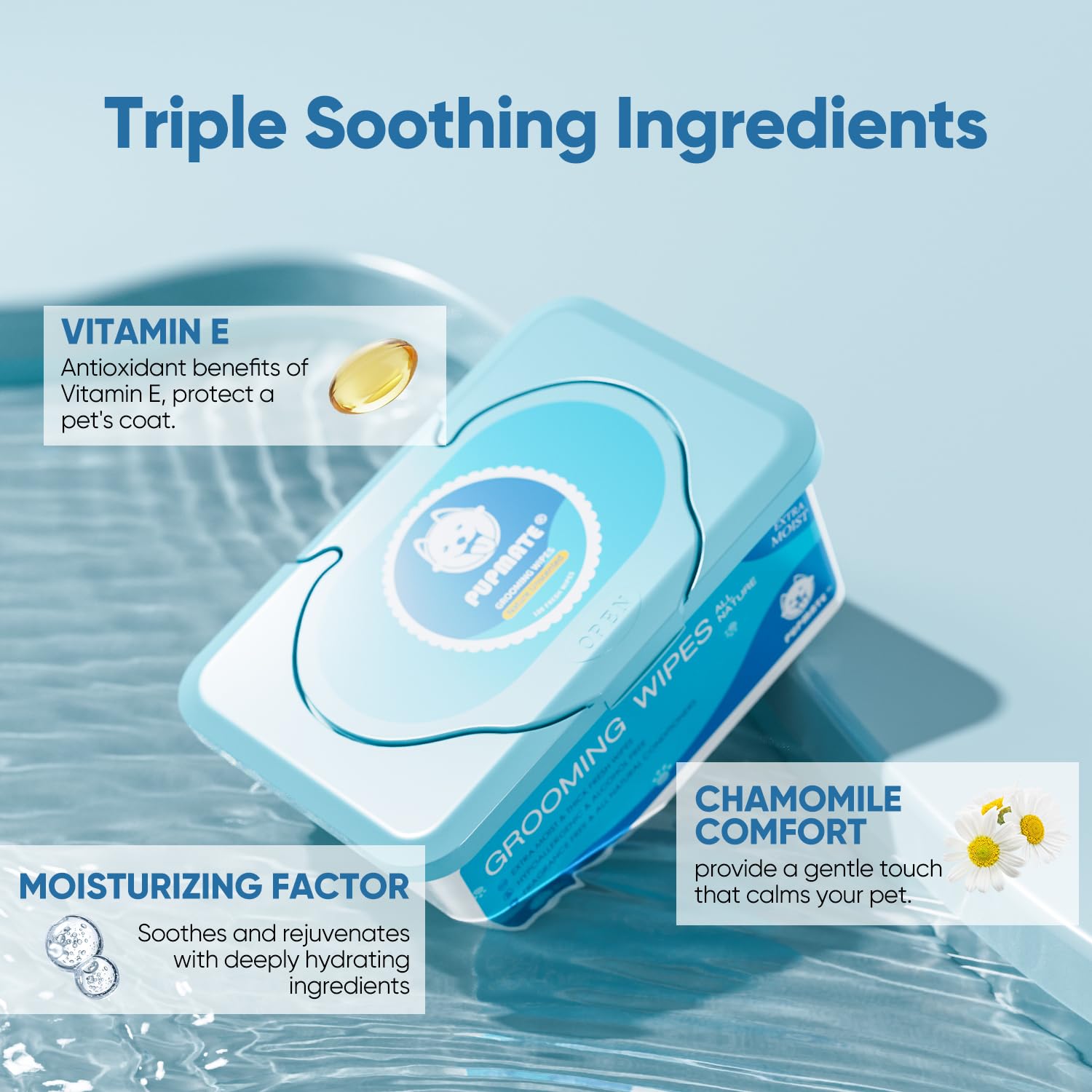 - DELICATE AND EFFICIENT CLEANSING: At PUPMATE, These grooming wipes for dogs & cats, and puppies wipes go beyond cleaning – they embody our commitment to creating a happier, healthier life for pets. Whether it's ridding them of dirt, mud, or a weird smell, our pet wipes work diligently to cleanse their butt, eyes, ears, and paws, ensuring that their four-legged friend feels consistently clean and delightfully refreshed