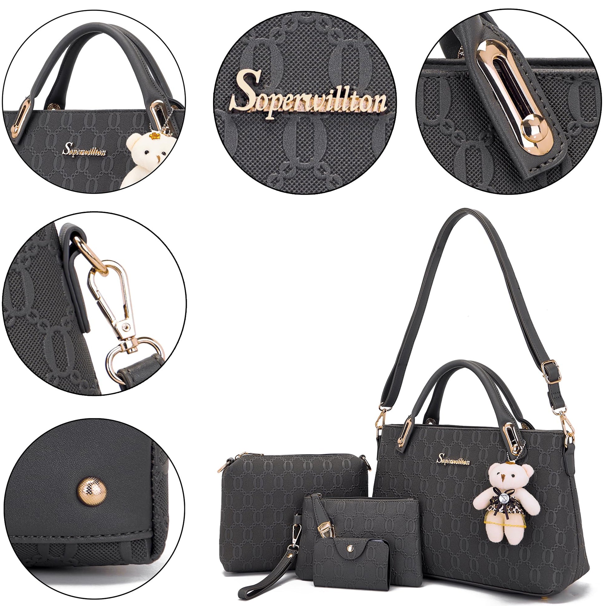 - MATERIAL: The Purse Set 4pcs is made of high quality synthetic leather and polyester lining with durable gold hardware. Detailed stitching with smoothly zippers. Highly anti-scratch and tear-resistant, not easy to be out of shape.