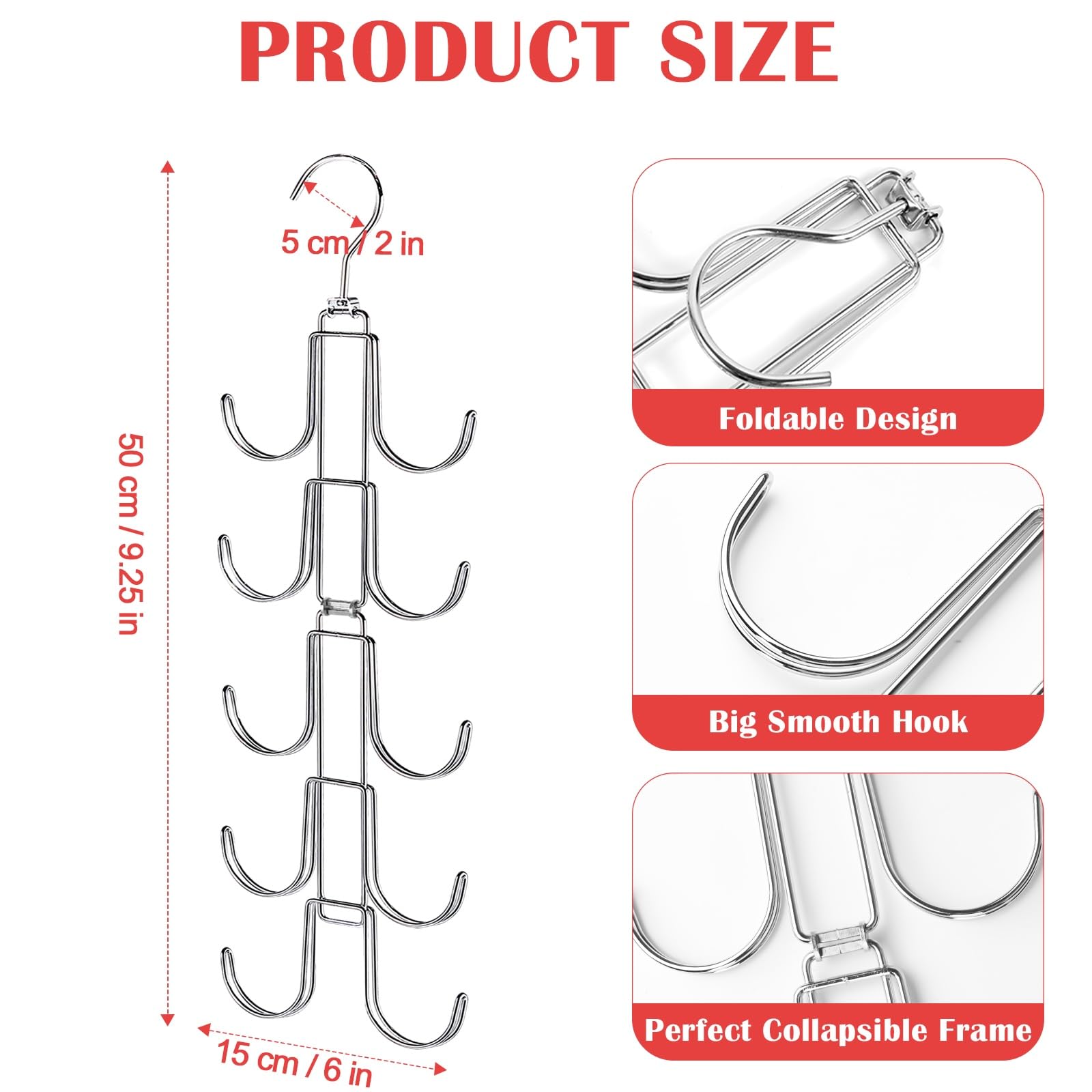 Purse Hanger for Closet, Collapsible Metal Purse Organizer with 20 Big Hooks(2 Pack), 360° Rotation for Better Organizer&Display, Foldable Bag Hangers Space Saving for Handbag, Belt, Scarve, Tie