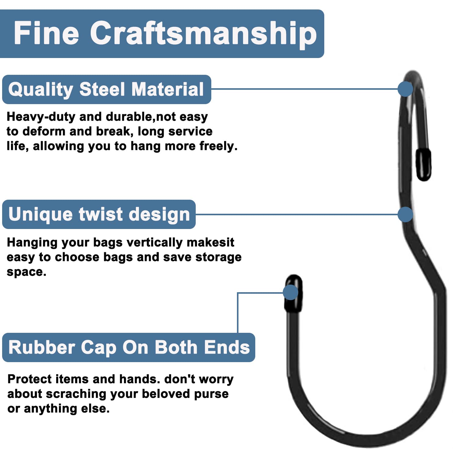- 【Improved design S hook】Purse hooks for closet is twisted on the conventional S hook, saving more space.