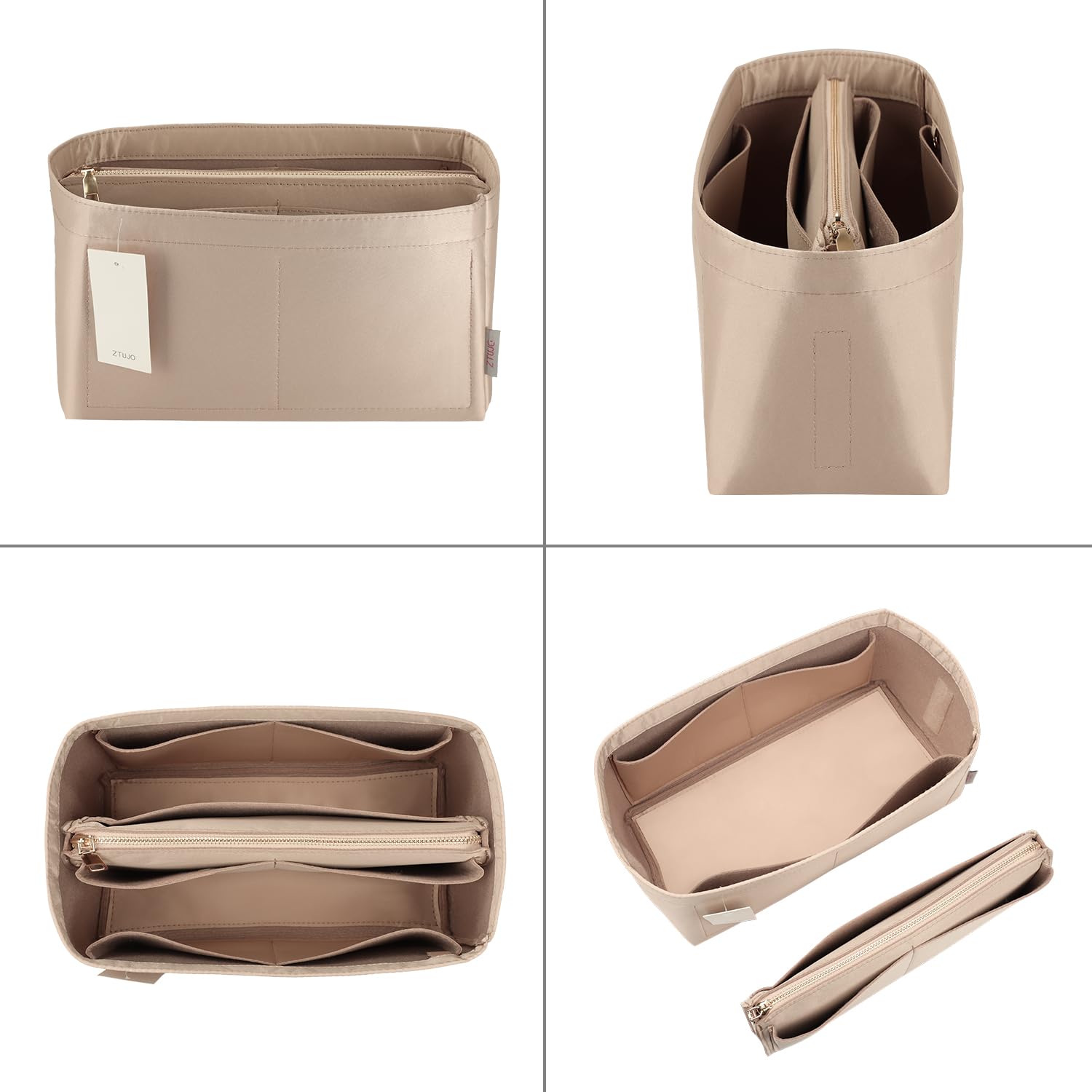 Purse Organizer Insert For Handbags, Purse Organizer With Zipper, Neverfull Organizer, Bag Organizer For Speedy Neverfull ONTHEGO Tote, Handbag and More (Silky Beige, small)