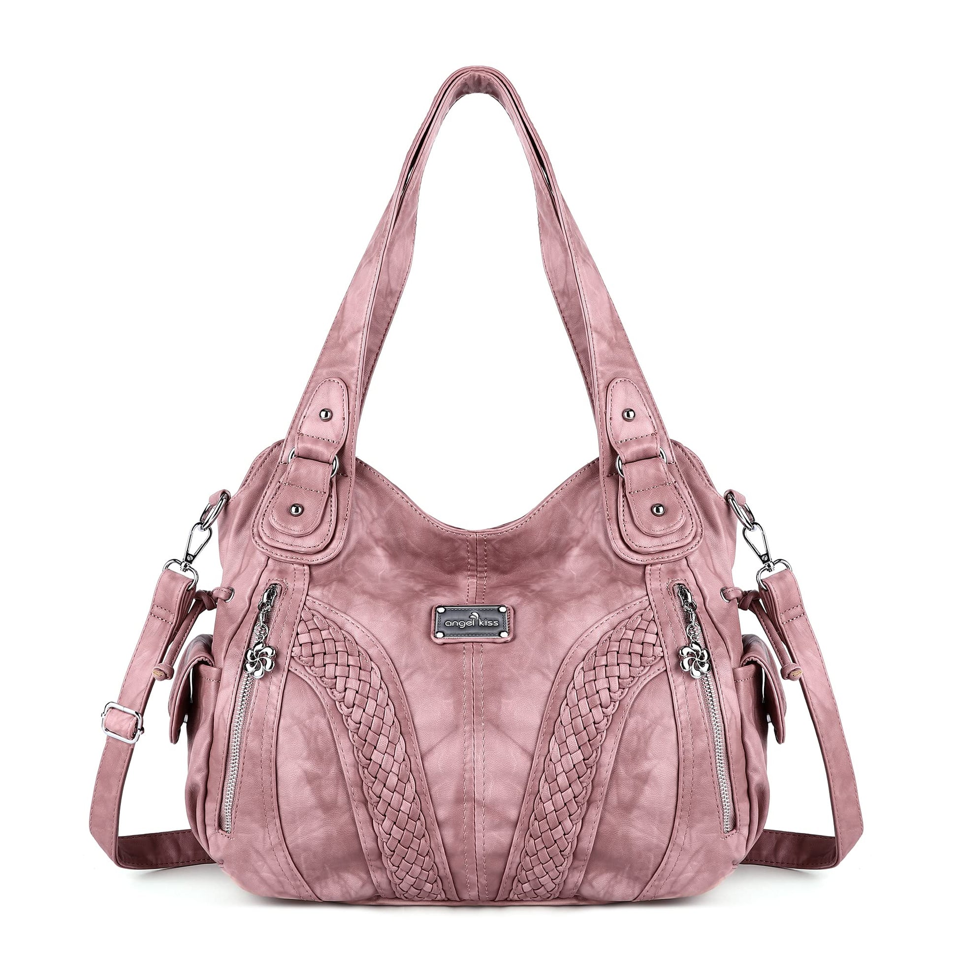 Purses and Handbags Women Fashion Tote Bag Shoulder Bags Top Handle Satchel Purses Washed Synthetic Leather Handbag Retro Pink 13.8 * 4.7 * 11.8 inches