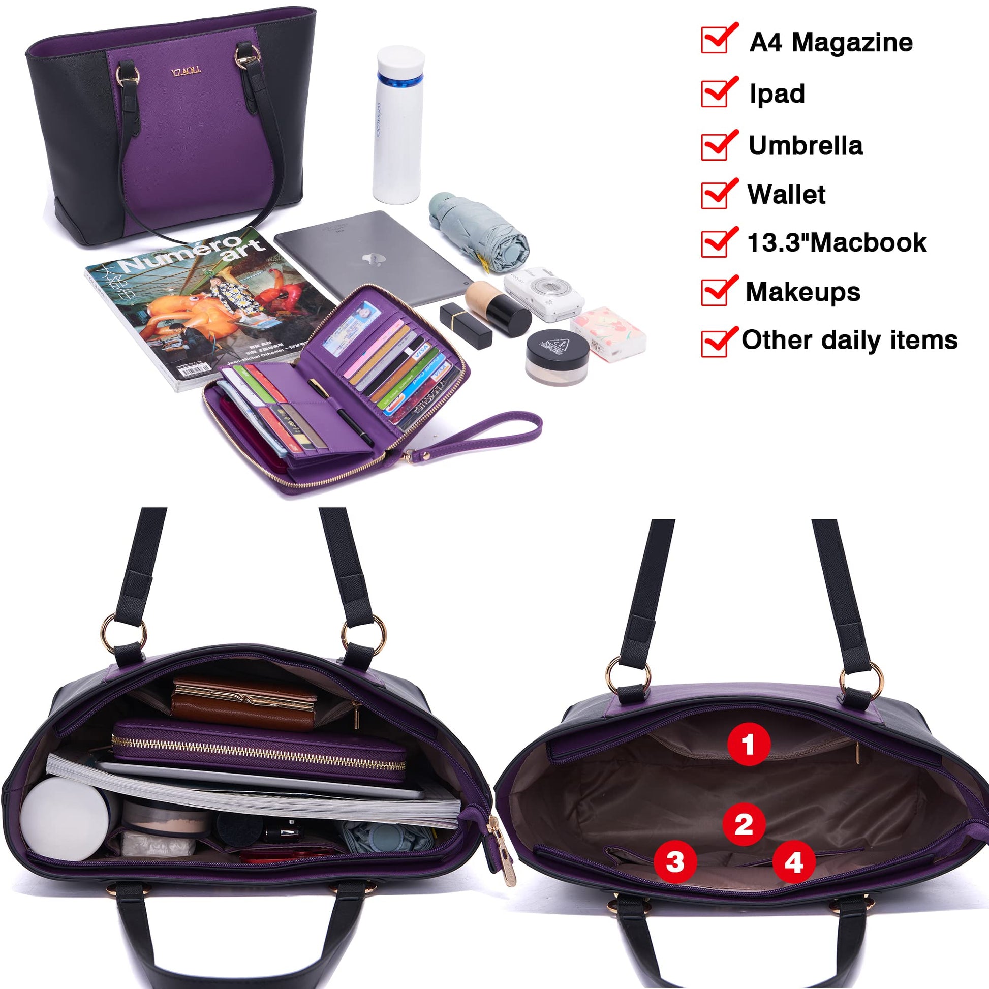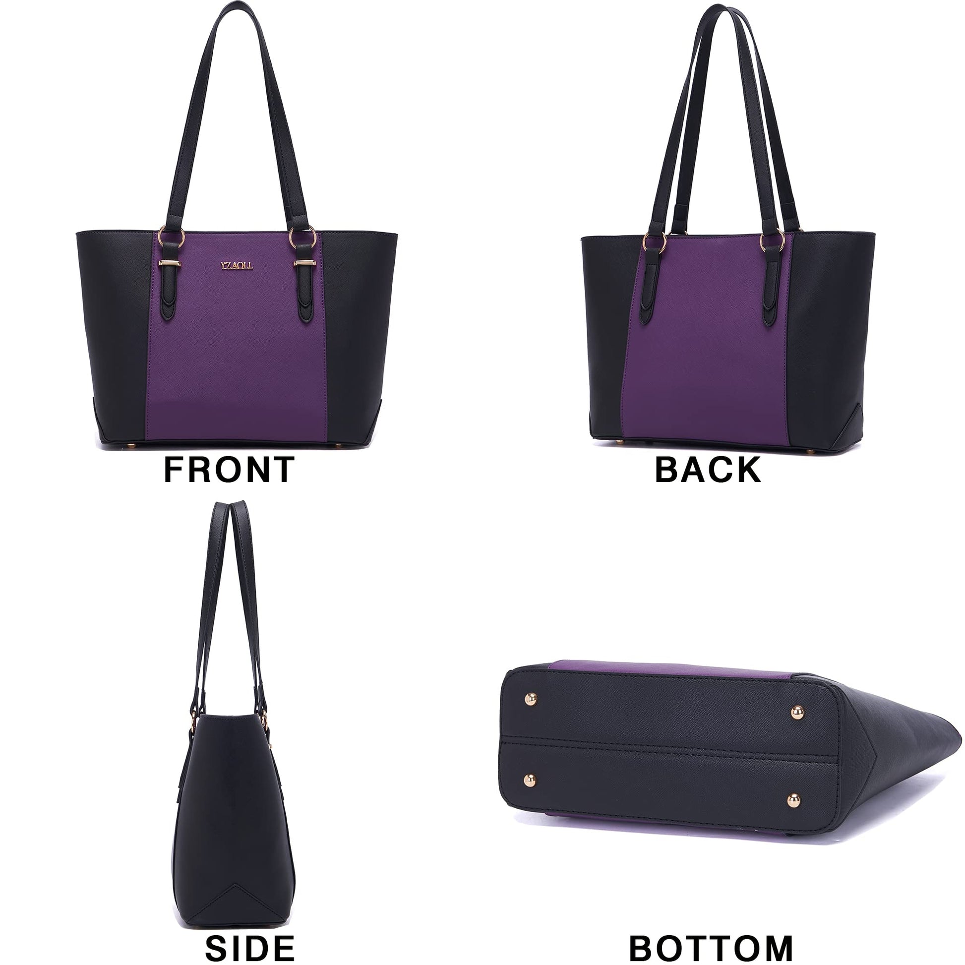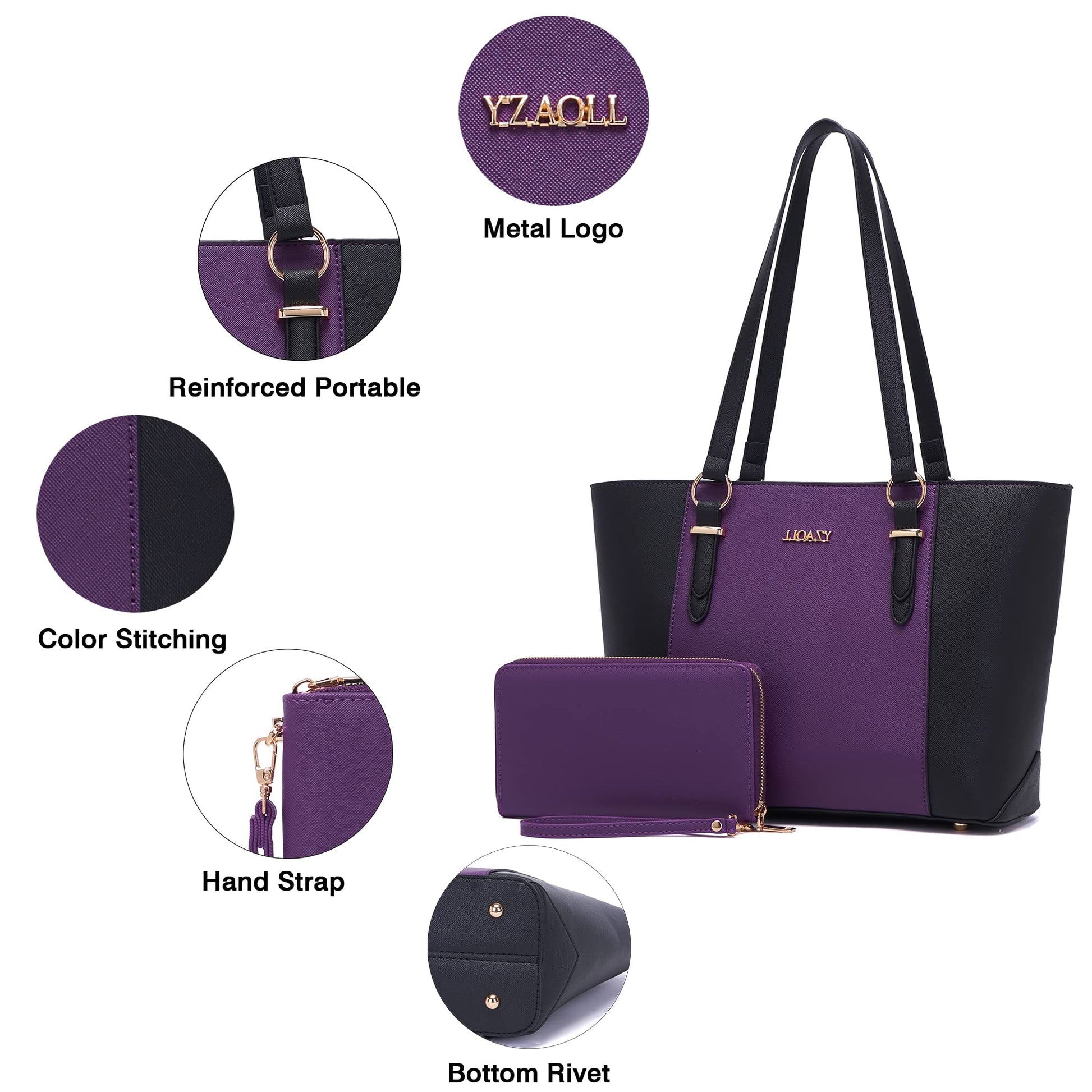 Purses for Women Large Tote Shoulder Color Blocking Handbags Top Handle Satchel Women Purse Wallet set 2pcs PurpleBlack