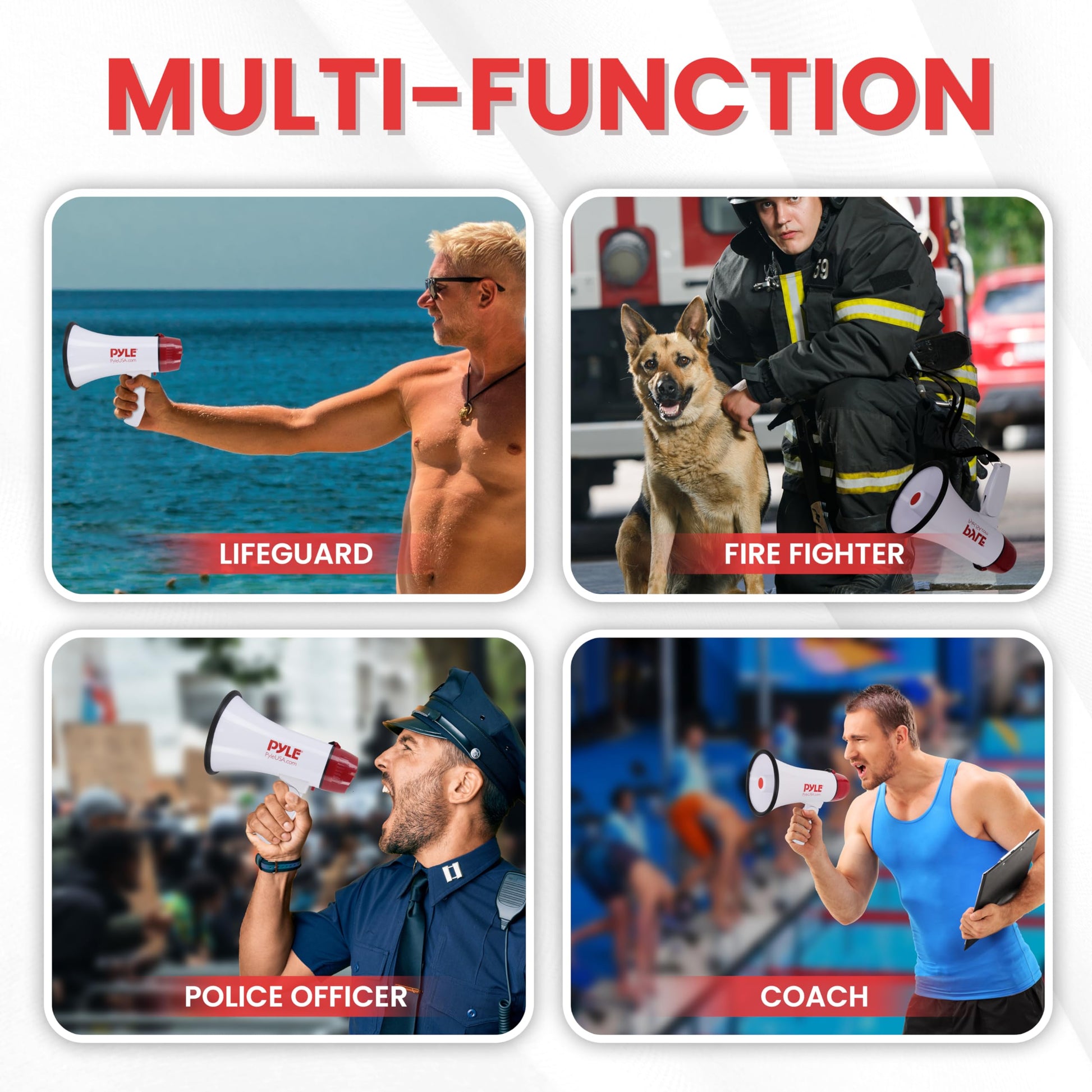 - MULTIPURPOSE: Indoor and outdoor safety officers, mentors, police, firefighters, cheerleaders, school sports, outdoor games and occasions. Event organizers and directors love this compact and versatile megaphone!