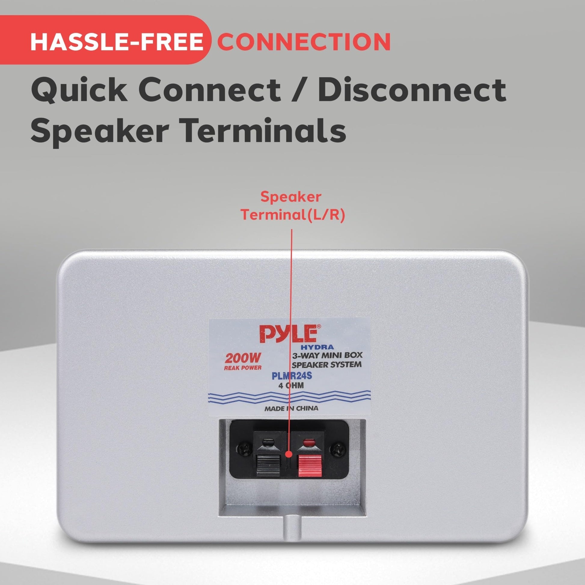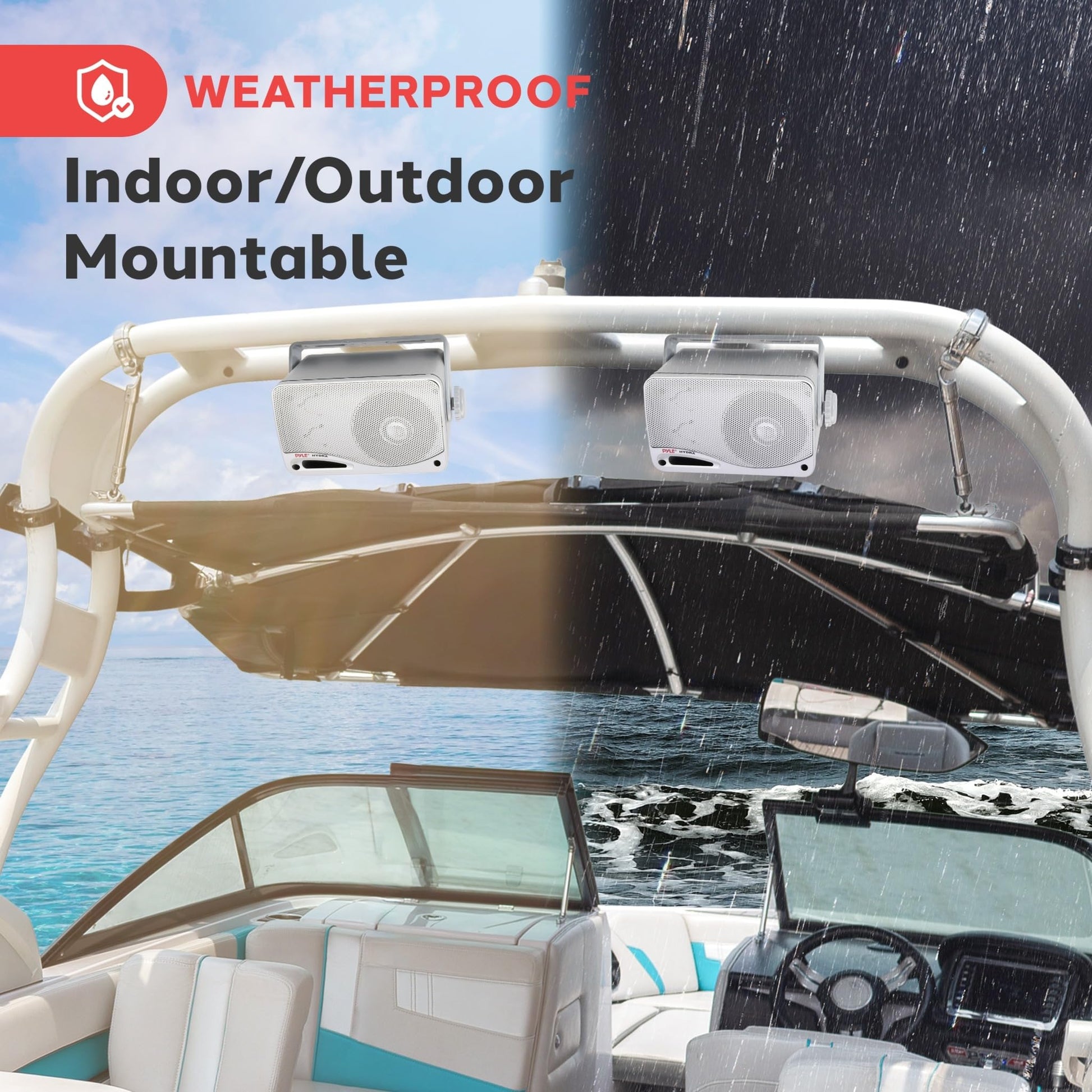 Pyle 3-Way Waterproof Marine Box Speakers - 3.5" 200 Watt Dual Indoor Outdoor Speaker System - Weatherproof/Waterproof Outdoor Speaker - Home, Boat, Pool, Patio Indoor Outdoor Use PLMR24S (Silver)