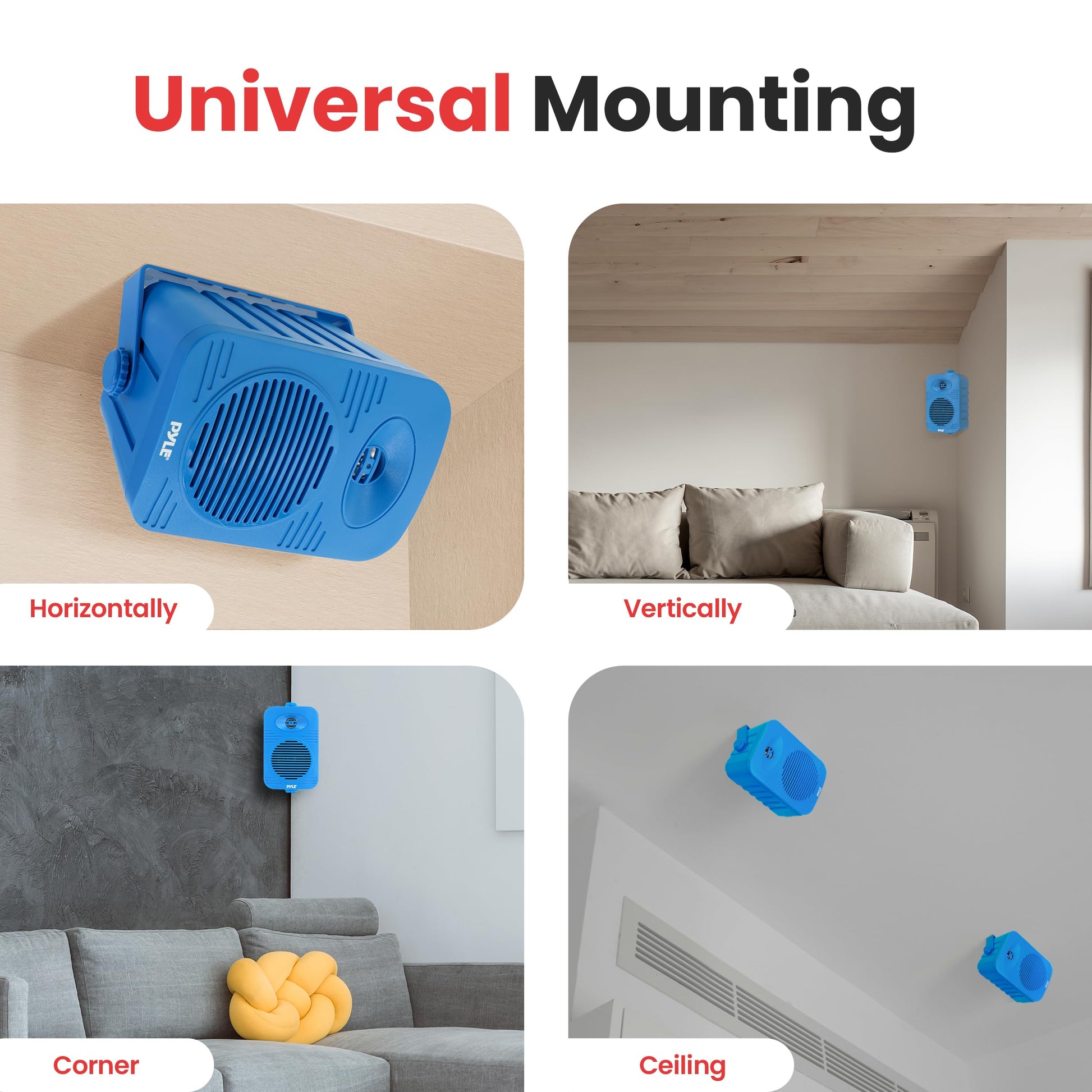 Pyle 300 Watt Bluetooth Indoor Outdoor Speakers Pair - Dual Waterproof 4” 2-Way Full Range Speaker System w/ 1/2” High Compliance Polymer Tweeter | Home, Boat, Marine, Deck, Patio, Poolside (Blue)