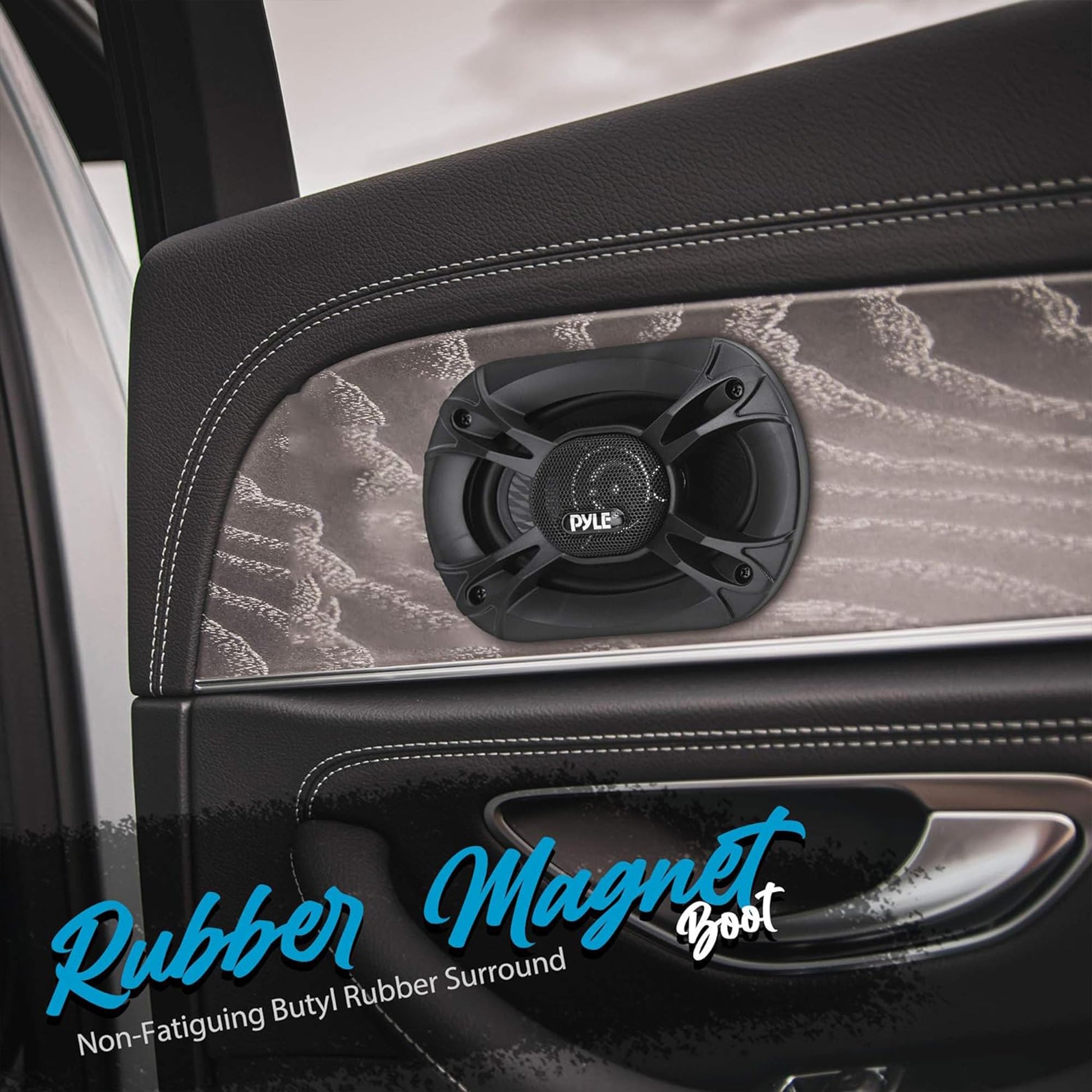 Details: 4-Way Universal Car Stereo Speakers - 500W 6x9” Quadraxial Loud Pro Audio Car Speaker Universal OEM Quick Replacement Component Speaker Vehicle Door/Side Panel Mount Compatible - Pyle PL61984BK (Pair)