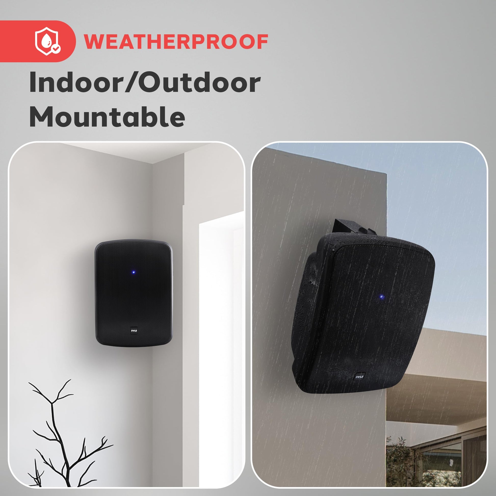 - 600 WATT POWER: Pyle’s 600-watt dual outdoor wall mount speaker system is what you need to listen to high-quality audio in your home, backyard, by the pool or patio outside! Includes (1) active and (1) passive 5.25” 2-way indoor outdoor speakers