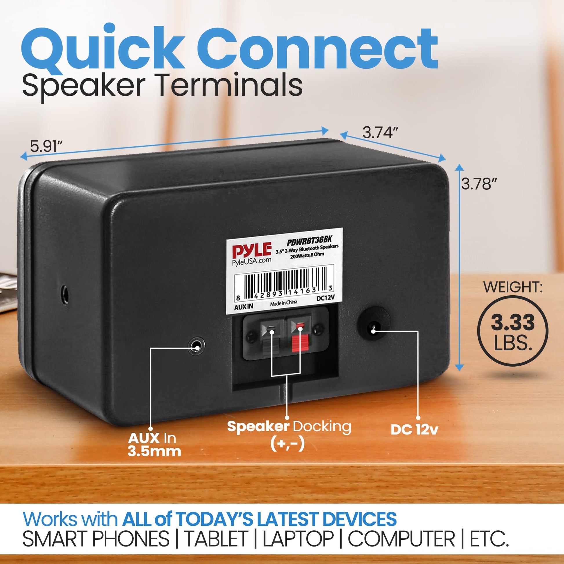PyleUsa Bluetooth Indoor Outdoor Speakers Pair - 200 Watt Dual Waterproof 3.5” 2-Way Full Range Speaker System w/ 1/2” High Compliance Polymer Tweeter - Home, Boat, Patio, Poolside - PDWRBT36BK,Black