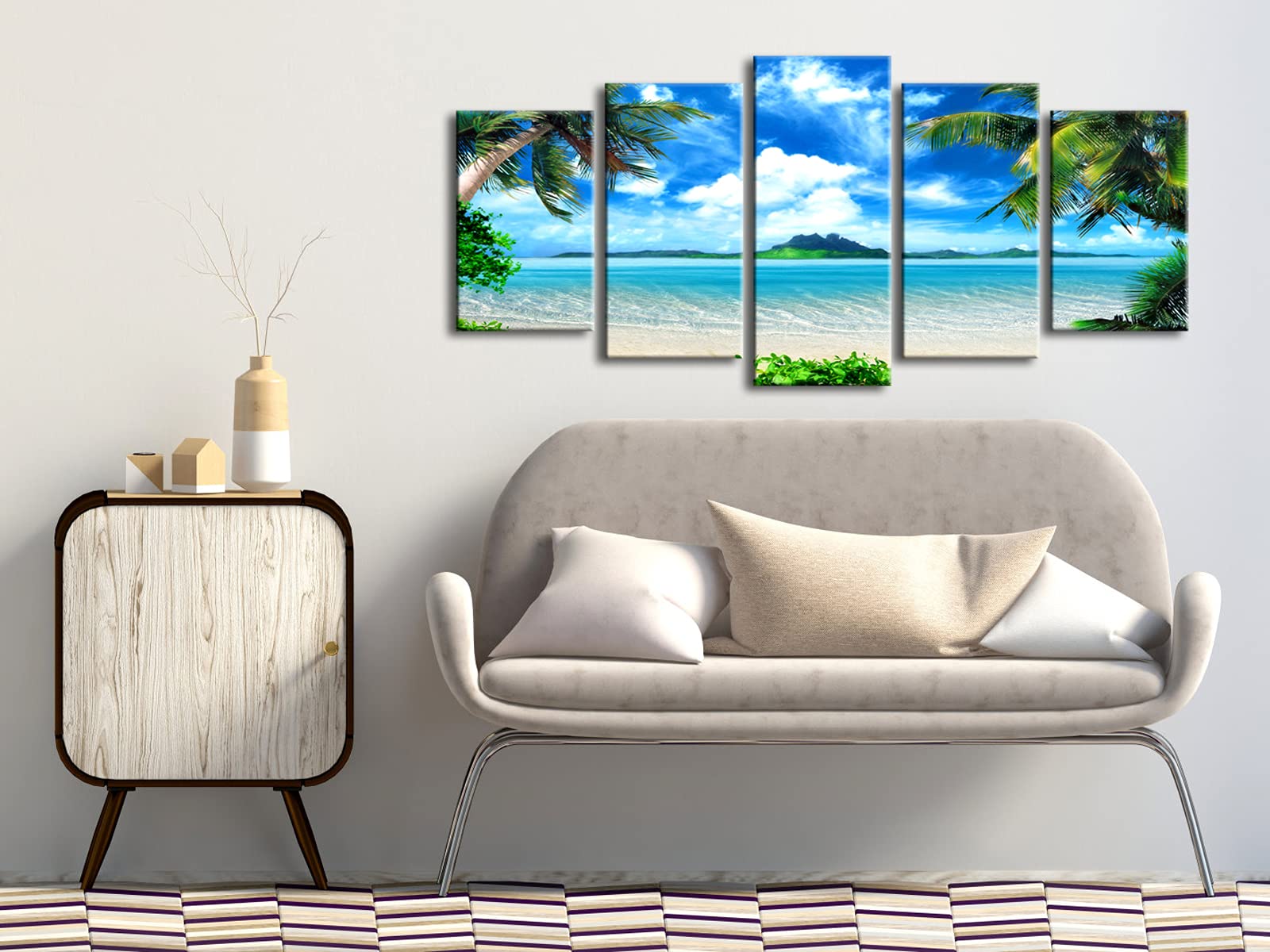 - 5 pieces gallery wrapped high definition modern ocean summer canvas wall art prints for home decorations.