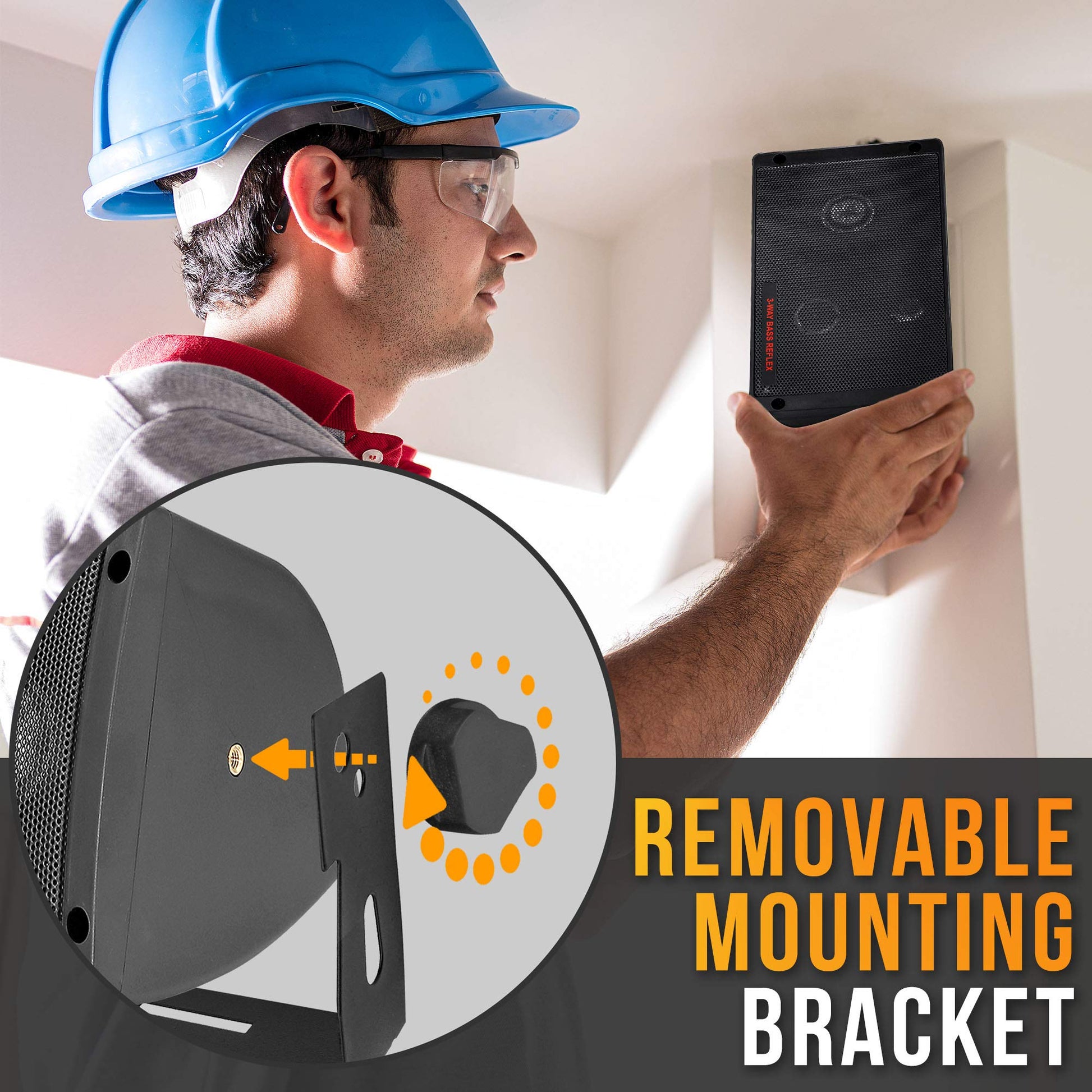 - UNIVERSAL MOUNTING: Set of 2 mountable speakers are protectively stored in a heavy-duty ABS cabinet w/ butyl rubber surround. Designed to be mounted on a support bar, tubing, frame, or wall. Includes mounting brackets and installation hardware.
