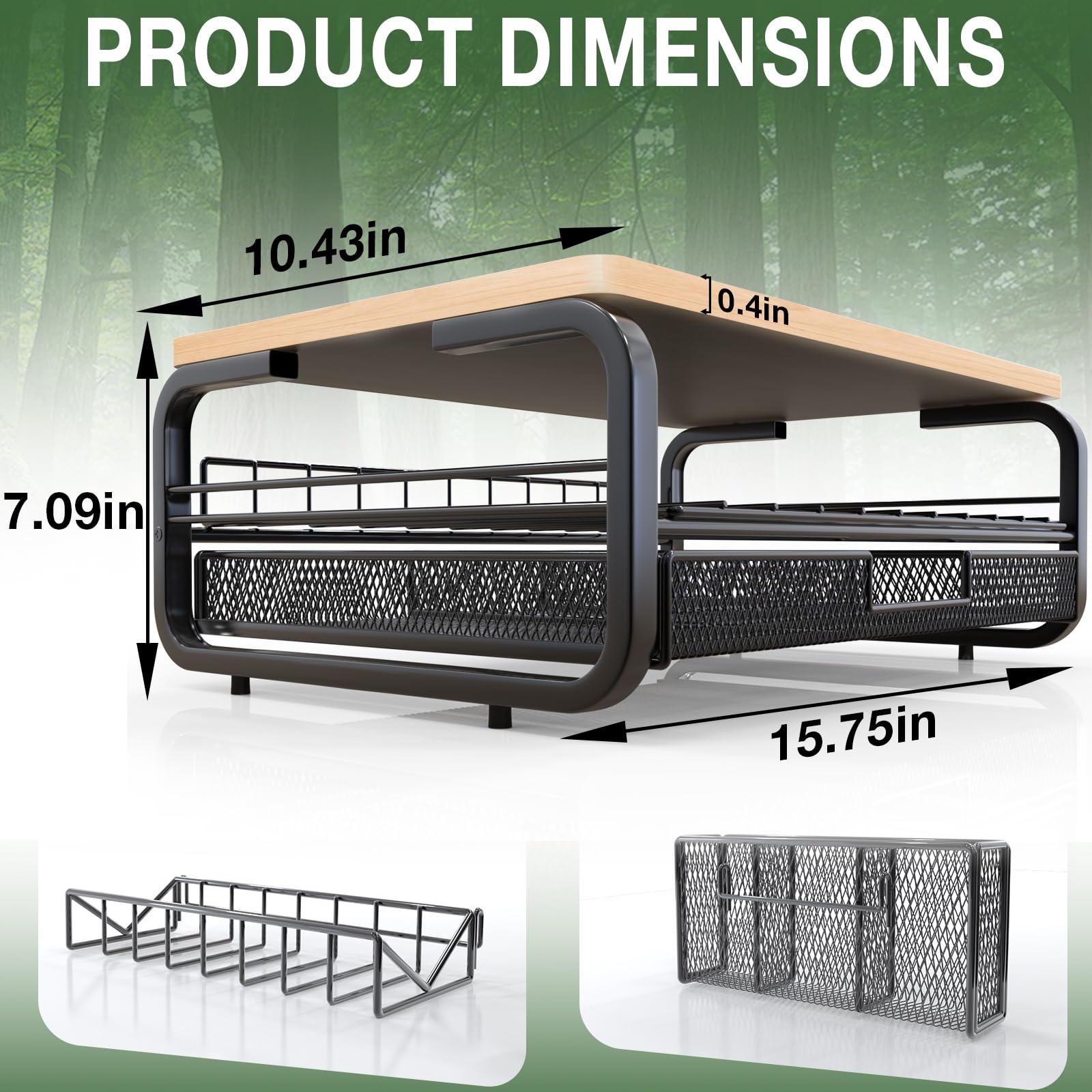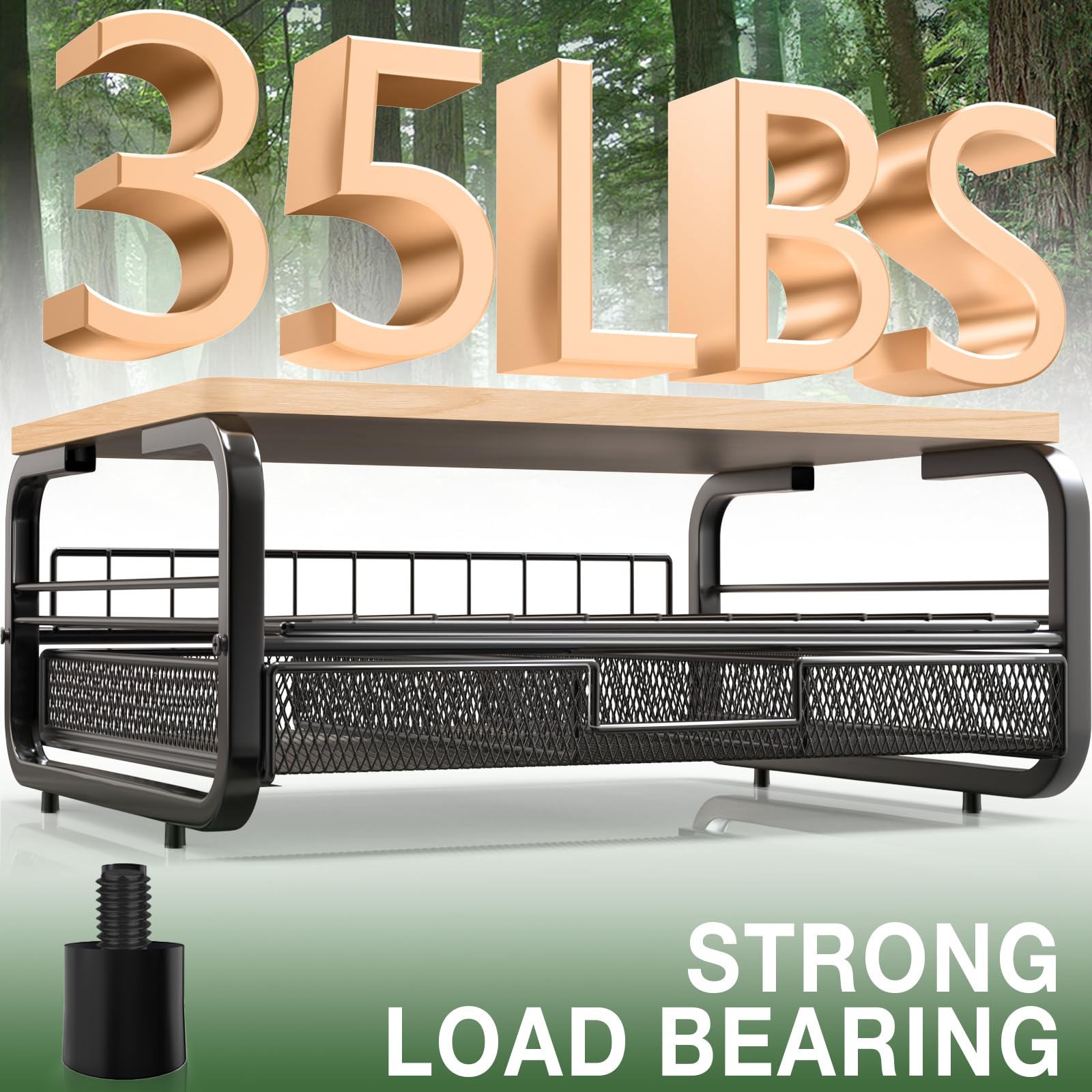 - Strong Load-bearing - The surface of our monitor riser for desk is made of high quality wood board and metal, environmentally friendly and not easy to deform, which can hold up to 35 pounds and suitable for all kinds of computer monitors, macBooks, laptops. NOTE: The four 1cm high non-slip feet are removable and you can install them according to your needs. (The product is protected by intellectual property rights.)
