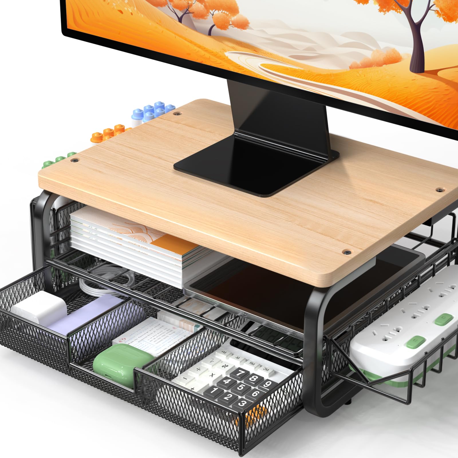 - Ergonomic Design - The computer monitor stand with drawer raises your monitor or laptop to a comfortable viewing height, effectively relieves health problems such as eye strain, neck, shoulders and back pain, allowing you to always work in a comfortable position.